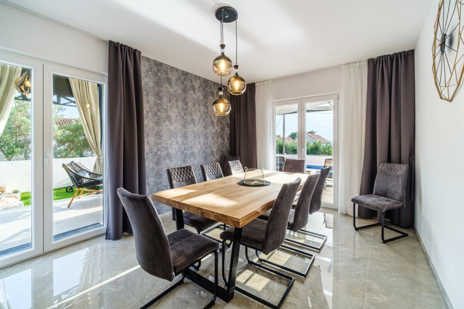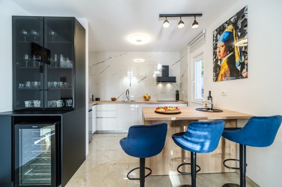 Prostor je pomno isplaniran, s velikim fokusom na detalje. Vila se sastoji se od četiri spavaće sobe, od koji svaka ima vlastitu kupaonicu, te dodatnog zahoda koji je u prizemlju vile. U prizemlju kuće nalazi se dnevni prostor, za opuštanje i zabavu kao i kuhinja i blagovaonica . Ovaj dio kuće ima izlaz na vanjski bazen i sunčalište s natkrivenom terasom .