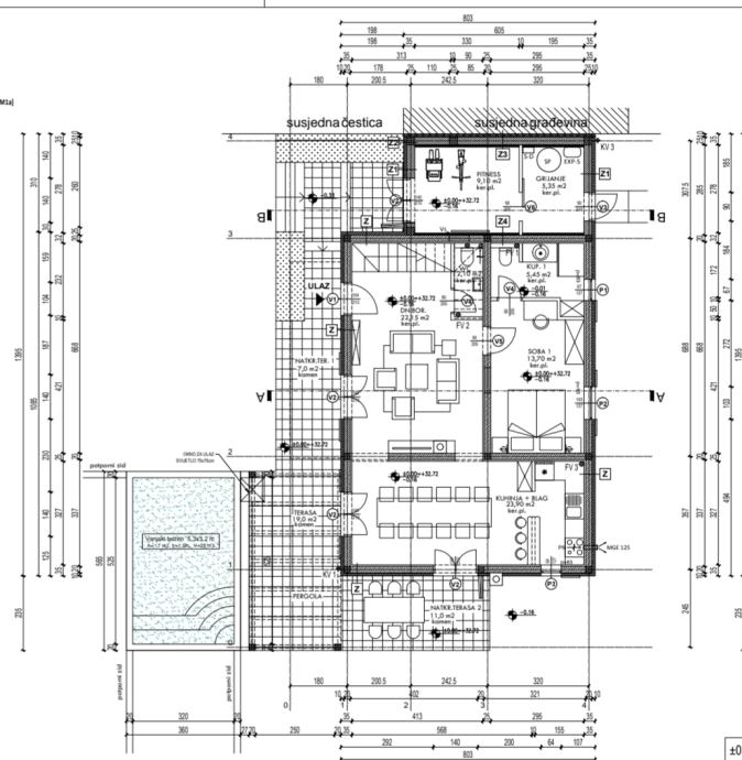 Vila je sagrađena na posjedu površine 400 četvornih metara, a stambena joj je površina 220 kvadrata.
