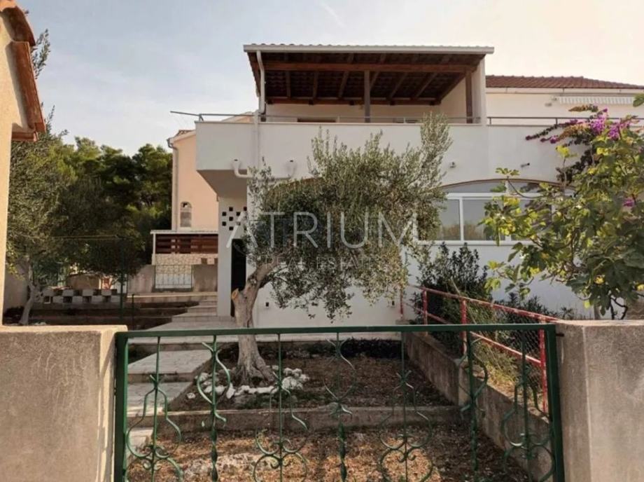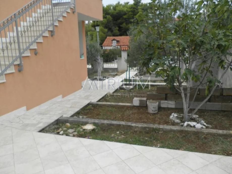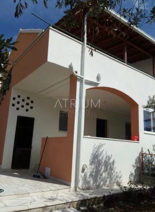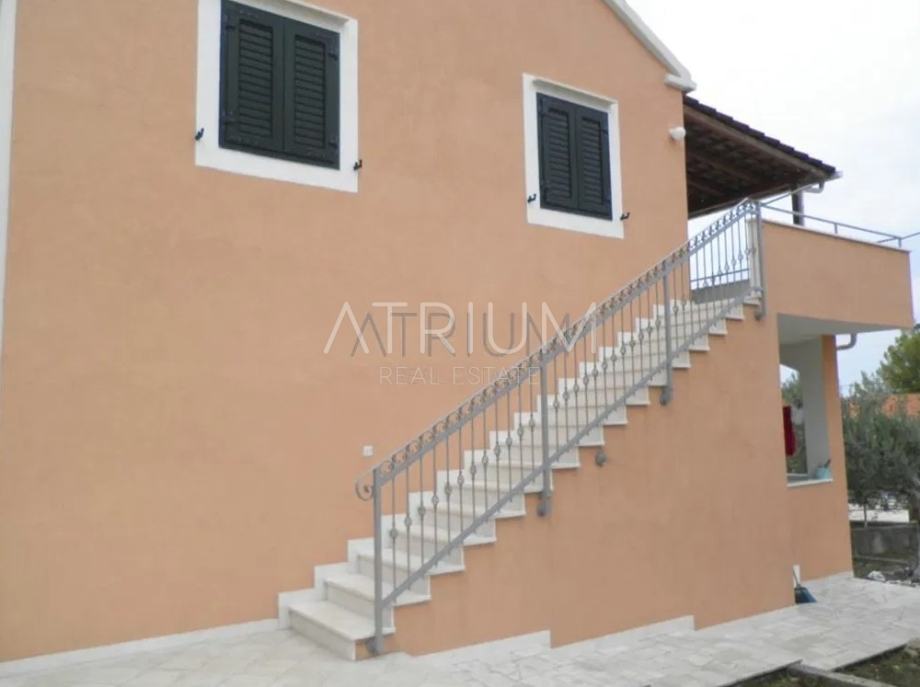Na prvom katu je dvosobni stan s kuhinjom i kupatilom te terasom s kojem se pruža lijep pogled na more ukupne povšine 55m2.