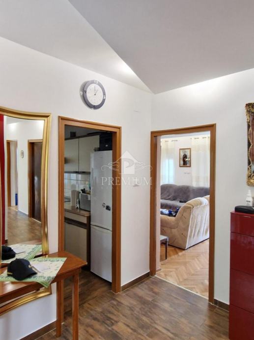 Kat se sastoji od hodnika, kuhinje sa blagovaonicom, dnevnog boravka, dvije spavaće sobe, kupaonice, WC-a, smočnice, natkrivene terase, neto površine 137,49 m2, bruto 156 m2.