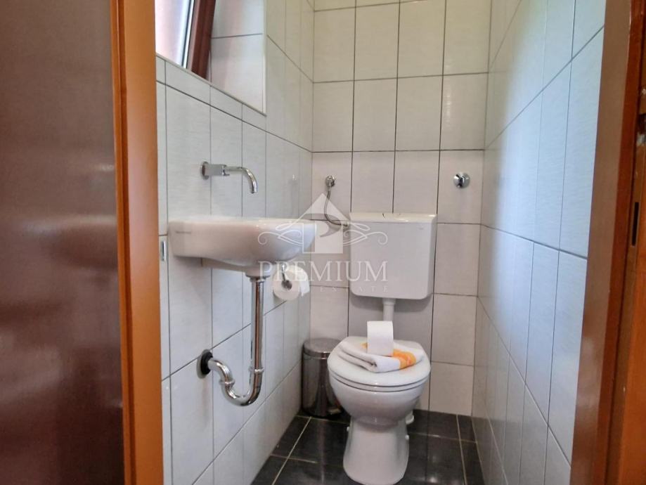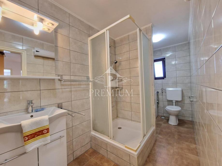Kuća se sastoji od dvije stambene jedinice. U prizemlju se nalazi garaža od 17 m2 i dvosobni apartman od 60 m2.