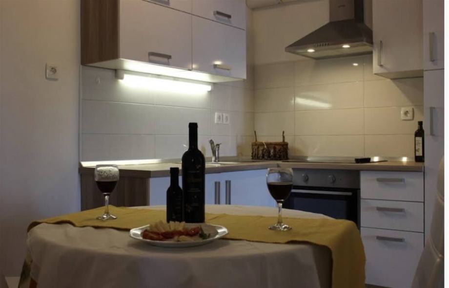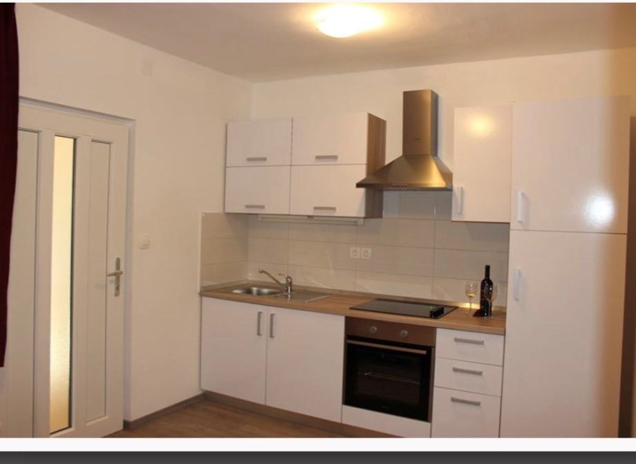 U prizemlju se nalazi garaža s dva parkirna mjesta i manji dvosoban stan s 2 kupaonice i fitness prostorom. Na katu je stan veličine 110 m2 koji se sastoji od 3 spavaće sobe, kupaonice, wc-a i dnevnog prostora s kuhinjom iz kojeg se izlazi na terasu i bazen.