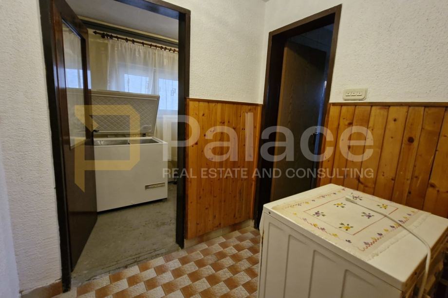 Hodnik, kuhinja, blagovaonica, dnevni boravak, kupaonica i ostava. Kuhinja, blagovaonica i dnevni boravak su odvojeni harmonika vratima te se po želji mogu spojiti ili blagovaonicu pretvoriti u dnevni boravak i dobiti još jednu spavaću sobu u prizemlju.