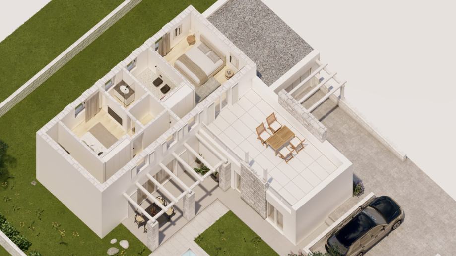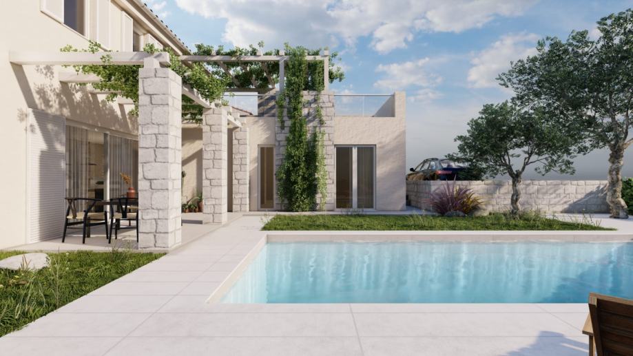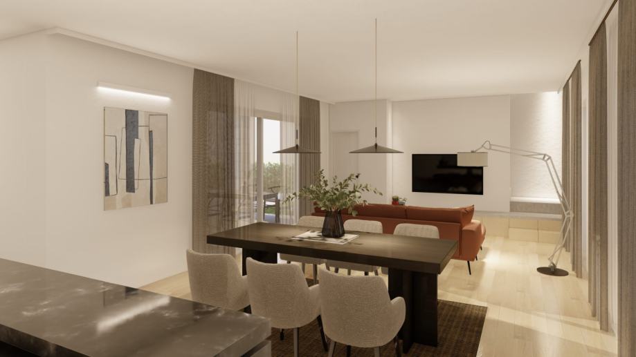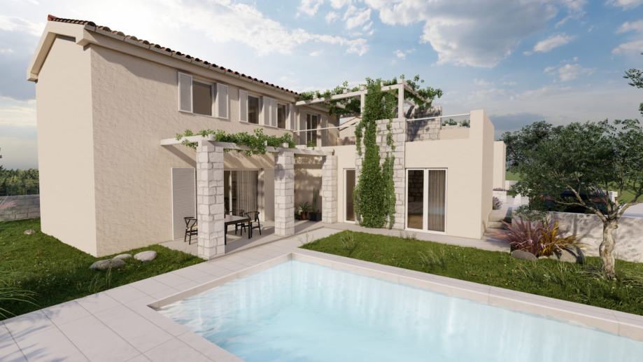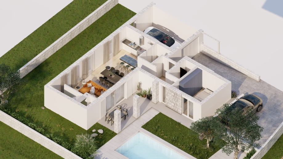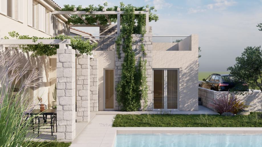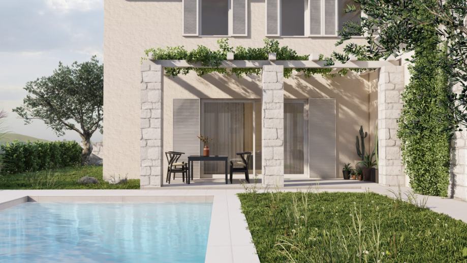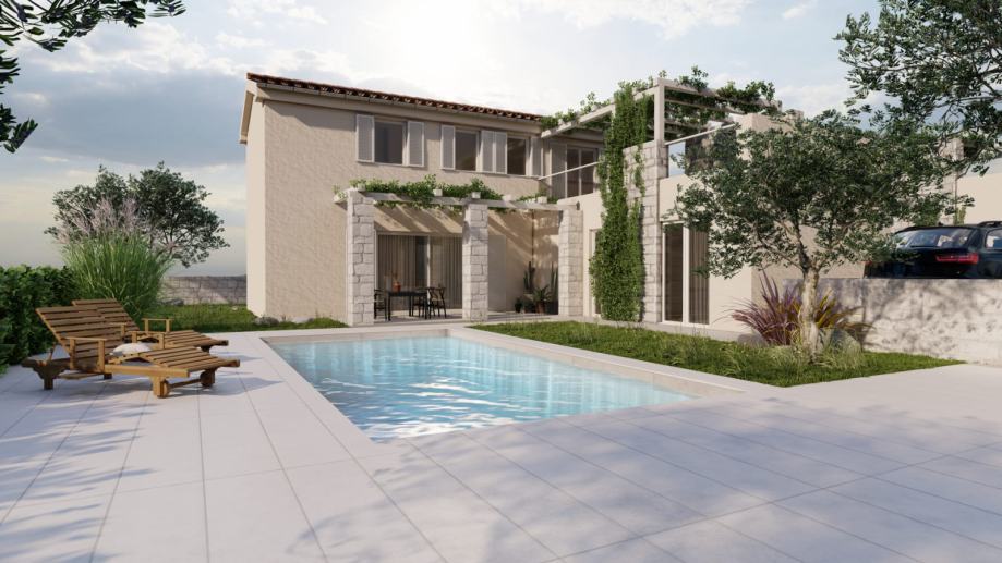 The oasis of peace and elegance will await you in the heart of the Istrian village of Momjan! The modern semi-detached house will be built in 2024 and will offer the perfect combination of comfort and style on 150 square meters. With three spacious bedrooms, each with its own elegantly appointed bathroom with a toilet, this house will provide privacy and a luxurious family living experience. The spacious living room and modern kitchen will be the heart of the home, while outside, there will be a beautiful 300 square meter garden, ideal for enjoying the beauty of the Istrian landscape.