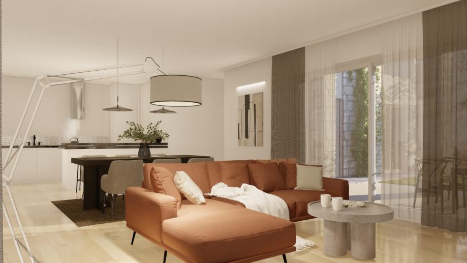 Oaza mira i elegancije čekat će vas u srcu istarskog mjesta Momjana! Moderna dvojna kuća bit će izgrađena do kraja svibnja 2024. godine te će pružiti savršenu kombinaciju udobnosti i stila na 150 kvadratnih metara. S tri prostrane spavaće sobe, svaka sa svojom elegantno uređenom kupaonicom s WC-om, ova kuća će nuditi privatnost i luksuzan doživljaj obiteljskog života. Prostrani dnevni boravak i moderna kuhinja bit će srce doma, dok će se vani pružiti prekrasna okućnica od 300 kvadratnih metara, idealna za uživanje u blagodatima istarskog krajolika.