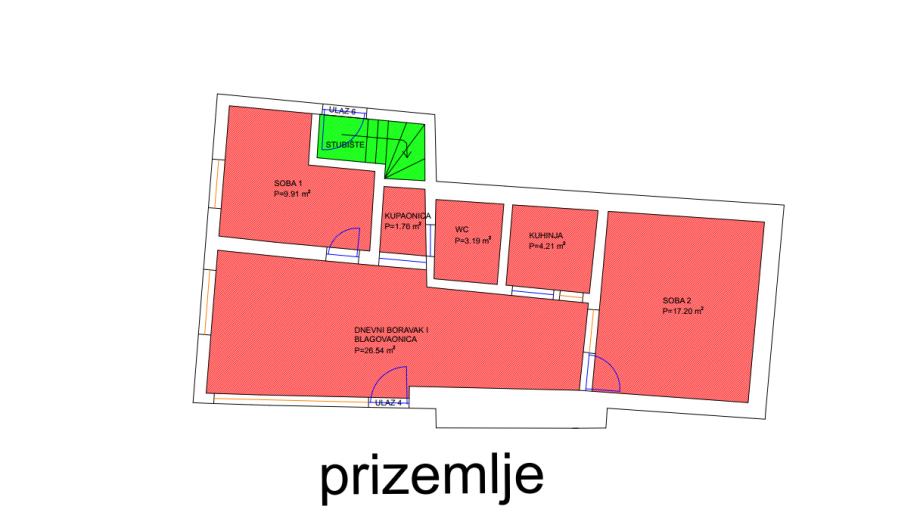 Stambena građevina je predviđena za rekonstrukciju nakon koje bi se dobili tri stana, jedan u prizemlju, i dva dvoetažna na katu + potkrovlje.