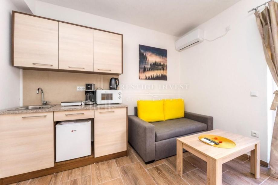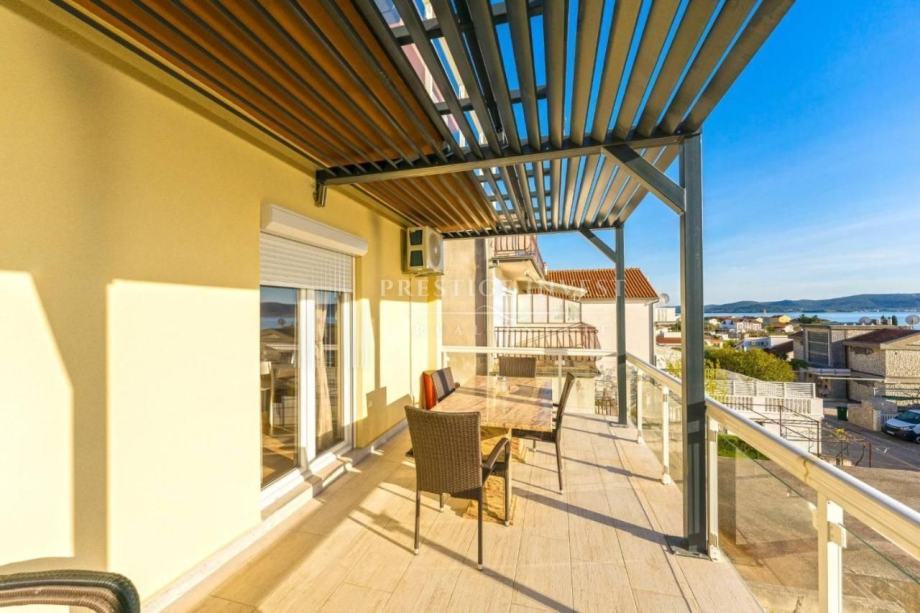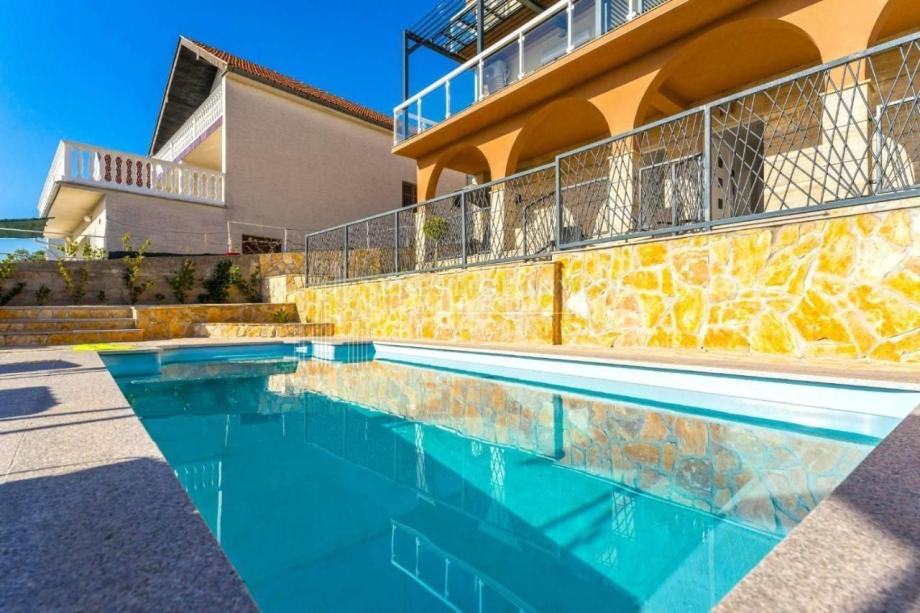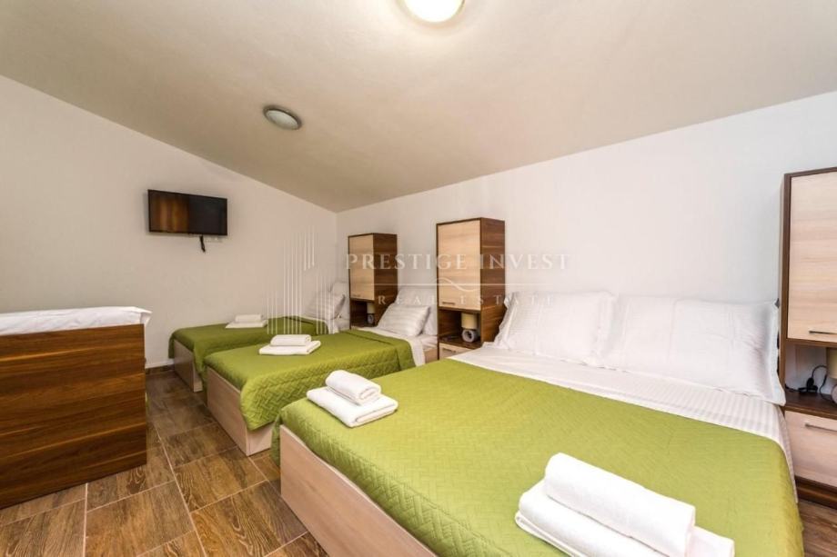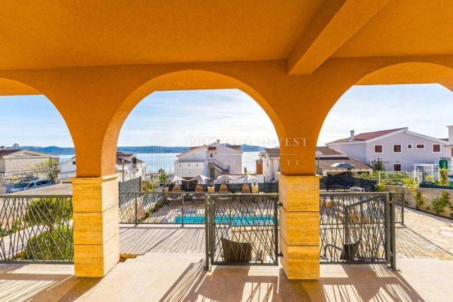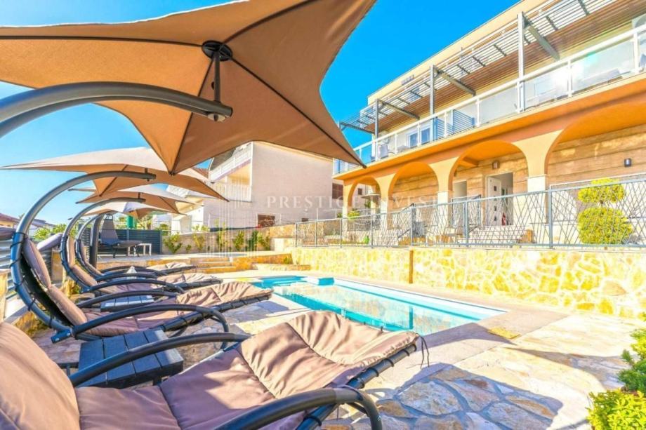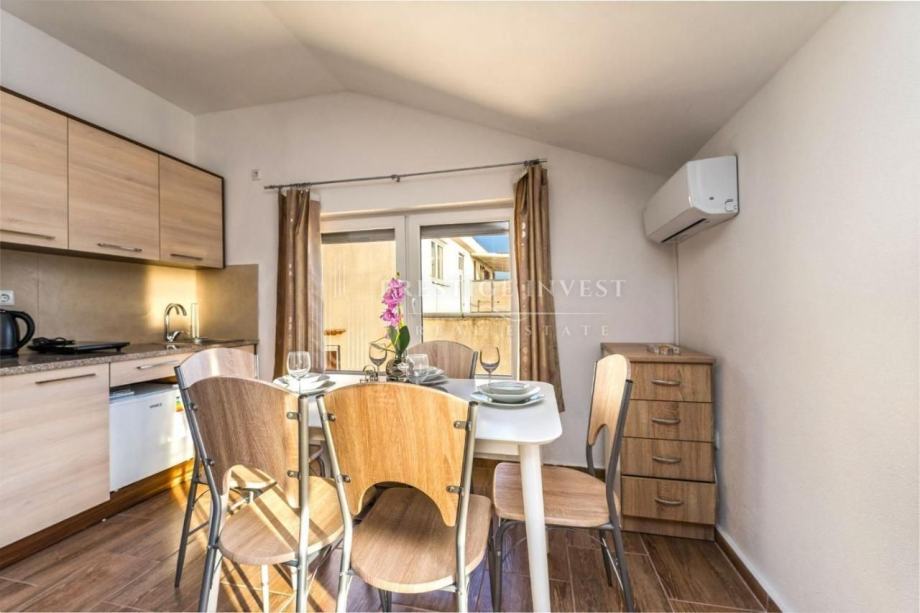 Nudi se na prodaju prekrasna apartmanska kuća smještena nedaleko od obale. Ova impozantna nekretnina sastoji se od 7 stambenih jedinica, od kojih su dva prostrana, dok su ostali apartmani manji po veličini. Cijela kuća nedavno je prošla temeljitu renovaciju, pružajući modernu udobnost uz zadržavanje autentičnog šarma.
