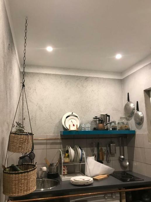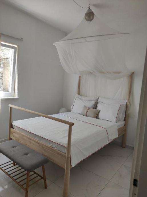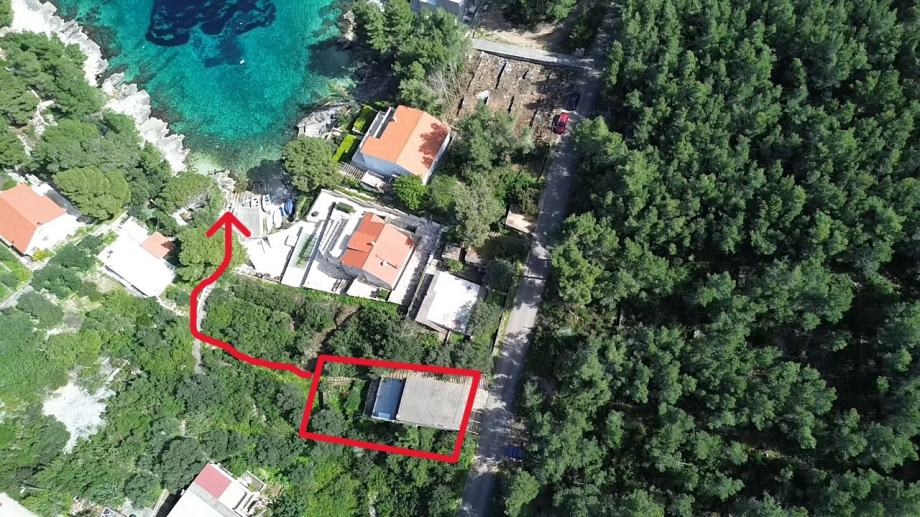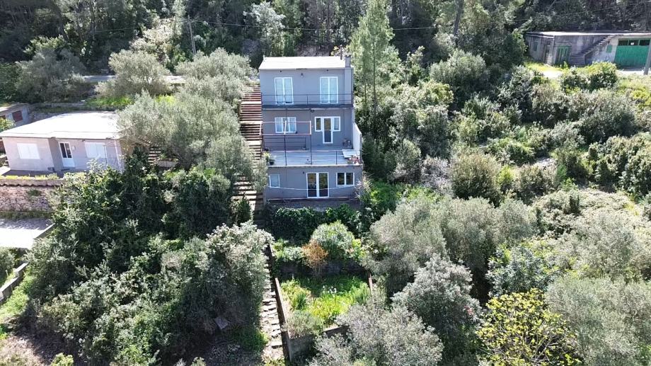 Kuća se nalazi uz prometnicu veličine je 180 bruto kvadratnih metara i udaljena je od mora 40 metara. Kuća se sastoji od prizemlja koje se koristi kao ljetna kuhinja sa kaminom i kupaona. Na prvom katu kuće smješten je kompletno opremljen apartman koji se ljeti iznajmljuje veličine 40 kvadrata sa dvije spavaće sobe, kupaona, kuhinja i terasa sa pogledom na arhipelag. Ispred kuće je vrt i staza koji vodi do mora. Stan na drugom katu je namjenjen za adaptaciju a sastoji se od kuhinje, dnevne sobe, spremišta, kupaone i dvije spavaće sobe sa balkonom. ispred se nalazi privatni parking za dva automobila. Kuća ima vodu, struju i internet, vlasništvo je uredno 1/1 i cijena je 250 000 euro.