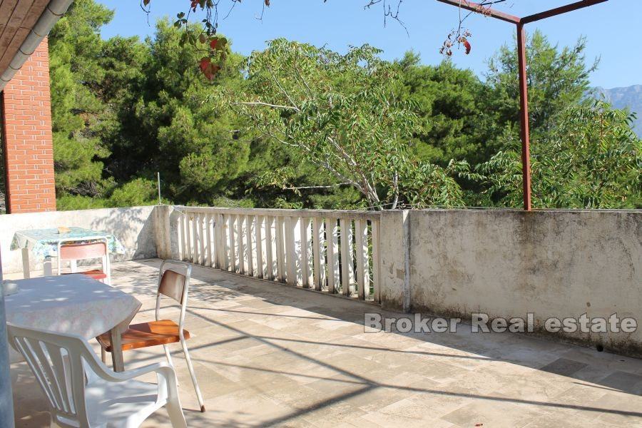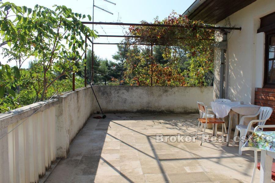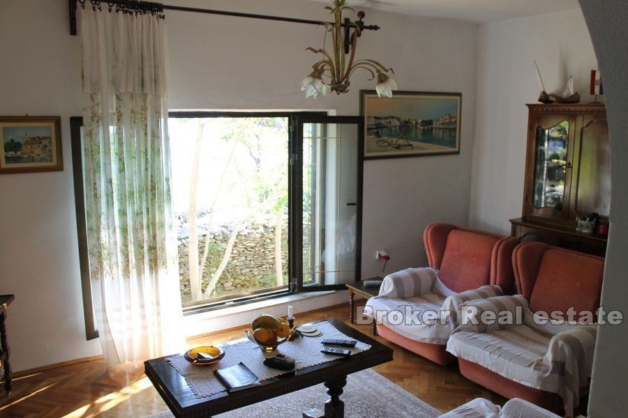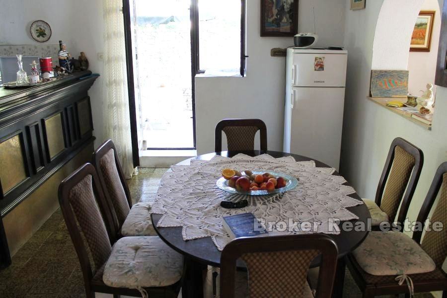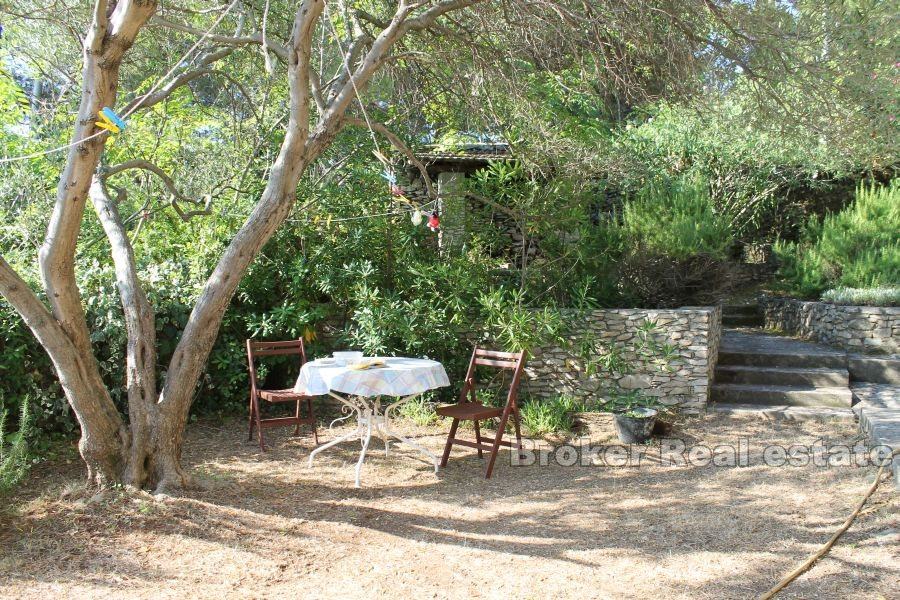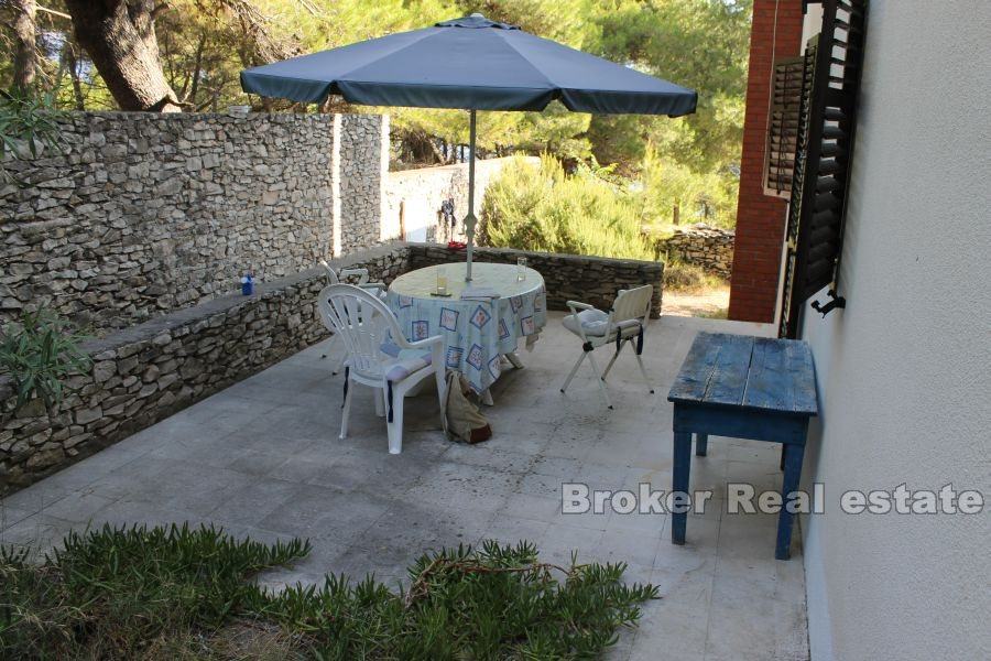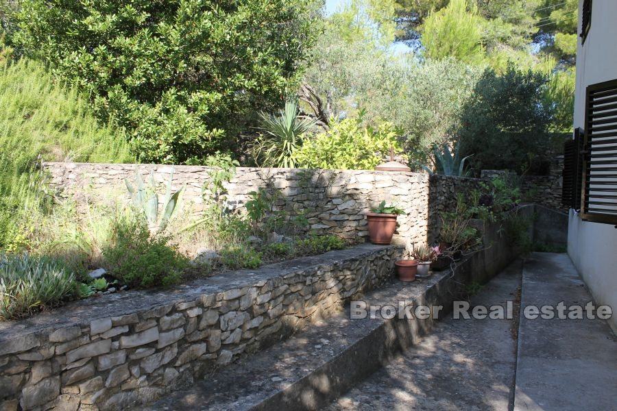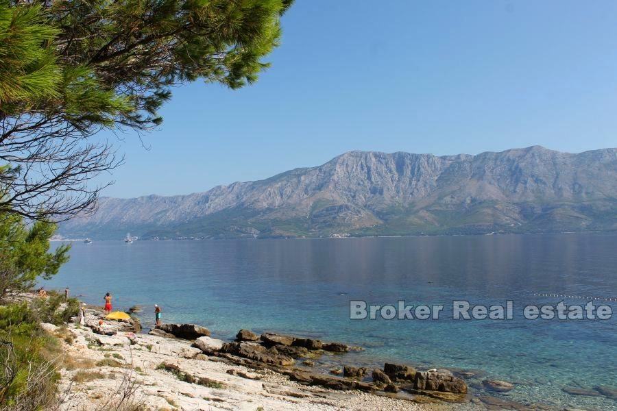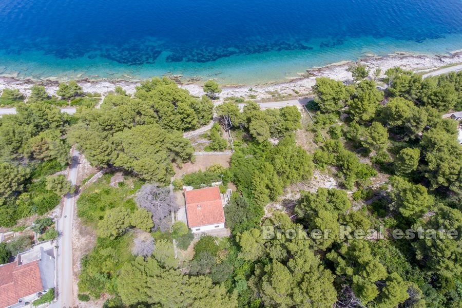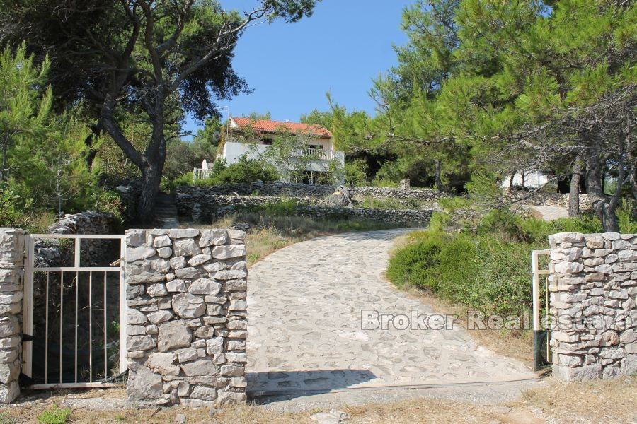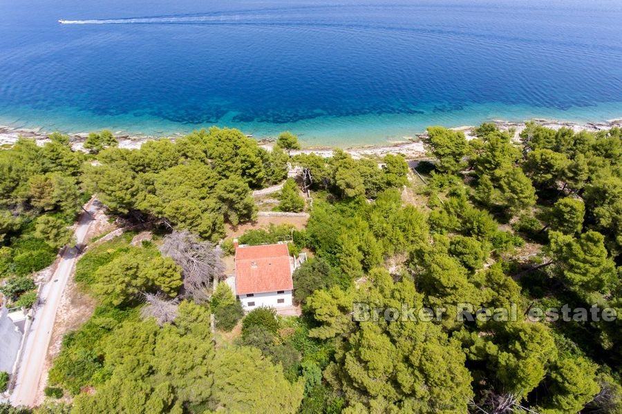 Samostojeća dvokatnica, sagrađena 1973, smještena na otoku Hvaru, na atraktivnoj lokaciji, prvi red uz more, okružena borovom šumom, s pogledom na planinu Biokovo i lijepim šljunčanim plažama, svega 500 metara od centra i trajektne luke. Kuća ima 270 m2 brutto stambene površine, a smještena je na građevnoj parceli od 1732 m2. Kuća ima mogućnost nadogradnje još jednog kata, a s obzirom na veličinu građevinske parcele, moguće je izgraditi dodatni stambeni objekt. U naravi, kuća se sastoji od dva dvosobna stana sa dvije pripadajuće velike terase (4X12 m). Donji kat uz spomenute sobe i terasu ima još dnevni boravak s kaminom, blagovaonicu i kupaonicu, a gornji kat je slično koncipiran, osim što ima još dodatni wc. Ova nekretnina nudi razne mogućnosti za investitore, s obzirom na prekrasnu lokaciju i veličinu parcele koja je prošarana mnogobrojnim suhozidovima koji ovu nekretninu čine još interesantnijom. Kuća ima priključak struje, mogućnost spajanja na vodovod (trenutno ima veliki spremnik za vodu čija je zapremnina dovoljna za potrošnju vode tokom cijelog ljeta), te septičku jamu. Kuća ima pristup automobilom.