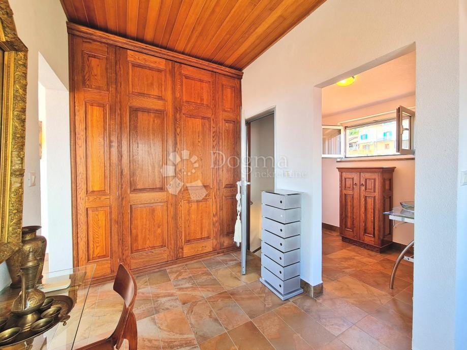 Kuća na moru s panoranskim pogledom u blizini Mošćeničke Drage. Ova šarmantna kuća na izuzetnoj lokaciji čini spoj svega što Vam je potrebno za savršen godišnji odmor, za ugodno življenje u miru i prirodi uz more, ili kao investicija za one koji se žele baviti turizmom. Nalazi se na par kilometara od centra Mošćeničke Drage gdje su svi potrebni sadržaji. Kuća se sastoji od openspace prostora kojeg čine prostrani dnevni boravak i kuhinja, ulaz i stubište za gornji dio stana, u nastavku su spavaća soba i kupaonica. Na drugom katu su još dvije sobe, garderoba i kupaonica Prekrasan pogled na more i okolicu pruža se sa svih strana kuće. U prizemlju je još jedan prostor s odvojenim toaletom koji je zamišljen kao apartman. Zatim garaža za jedan auto koja je također uređena i kao dodatni radni prostor i spremište. Ispred je manja terasa.