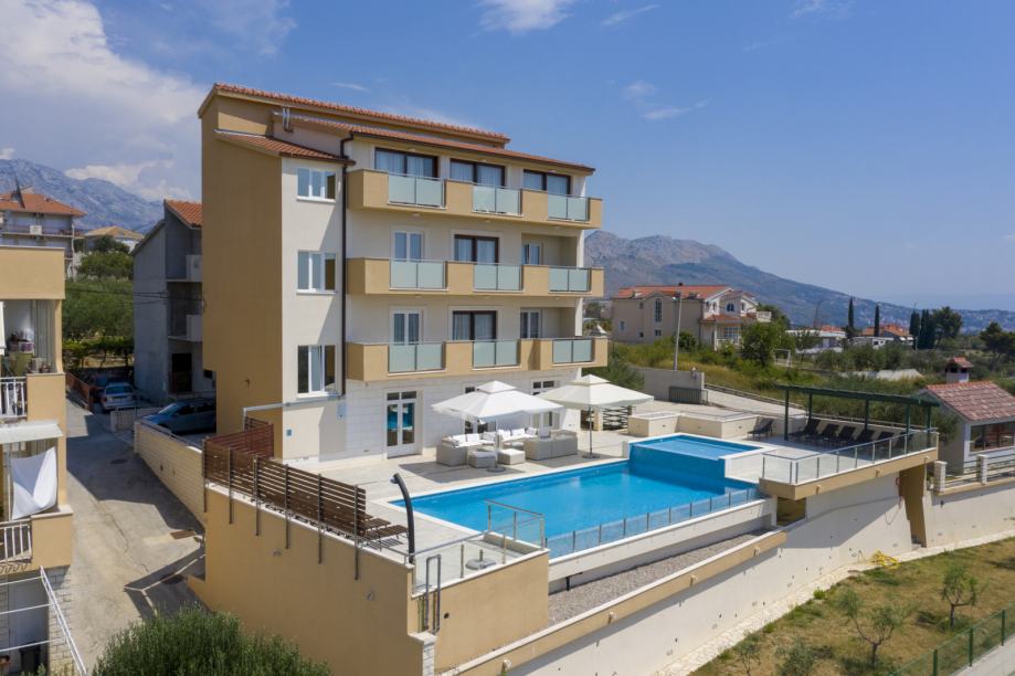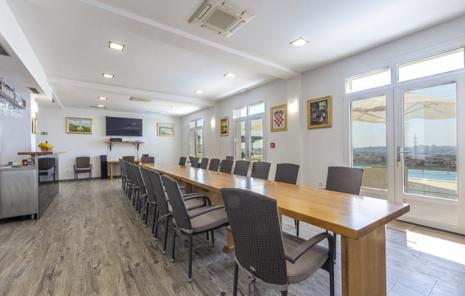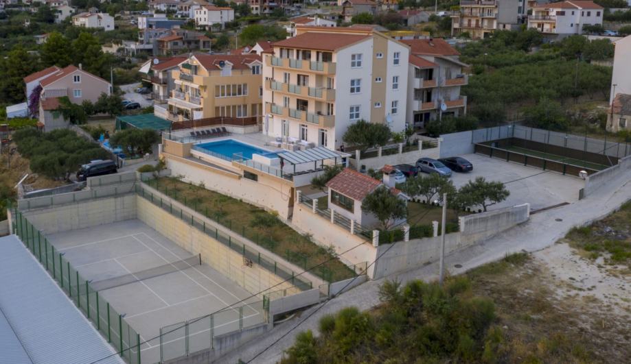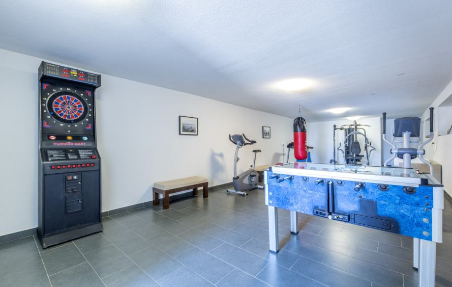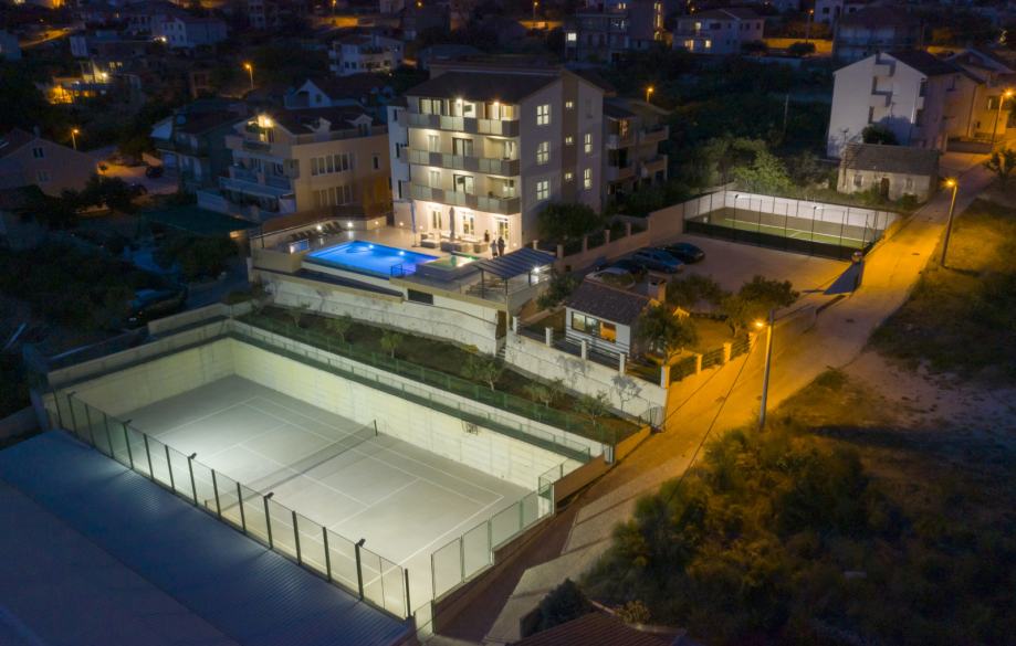 U podrumu kuće nalaze se sauna, jacuzzi ,teretana ,stolni tenis, pikado, stolni nogomet i biljar gdje se možete opustiti, trenirati i zabaviti. Ispred kuće se nalazi bazen od 70m2 do kojega se nalazi mala kučica za zabavu sa roštiljem, tenisko igralište i nogometno igralište sa umjetnom travom i igralištem za boćanje.