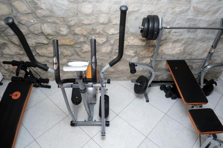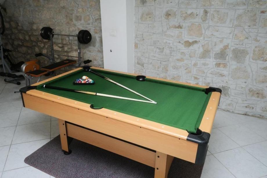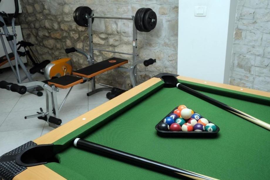 U prizemlju kuće nalazi se konoba, jacuzzi, biljar i sprave za vježbanje.