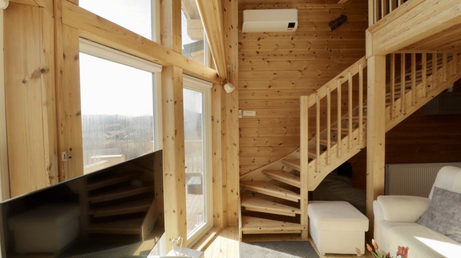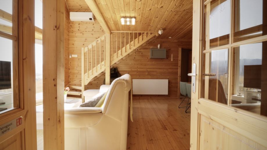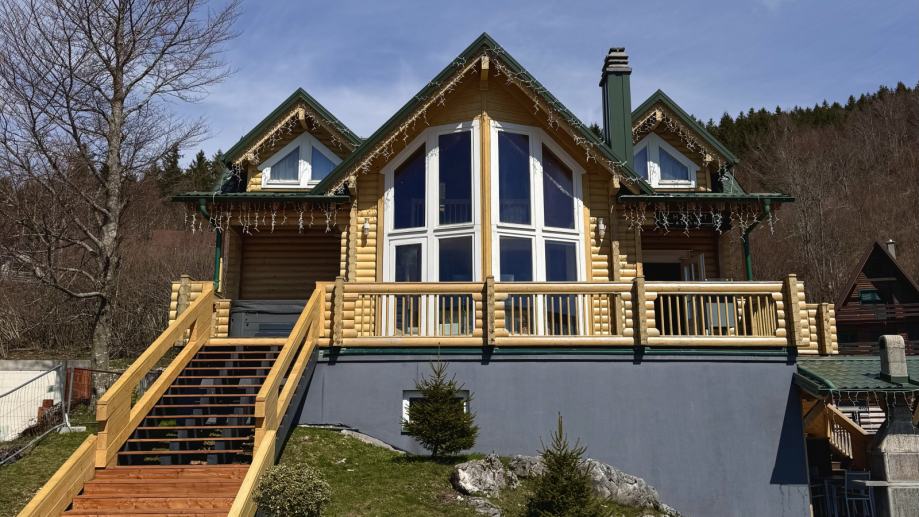 Riječ je o suvremenom chaletu građenom u Honka fusion stilu, izvedenom od emajliranih trupaca spororastućeg sibirskog bora, s konstrukcijskom garancijom od 50 godina. Dodatnih 20 cm izolacije osigurava iznimnu energetsku učinkovitost i ugodan boravak tijekom cijele godine, dok velike staklene stijene – od poda do stropa – brišu granicu između interijera i planinskog krajolika.