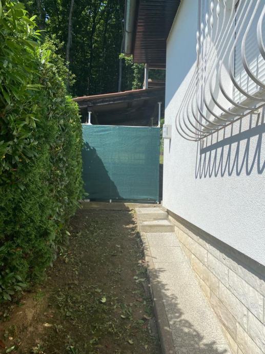 Iza kuće se nalazi otvoreni prostor veličine cca 50m2, popločen kockama za fešte s roštiljem i manjim spremištem(drva, stol stolice,suncobran).