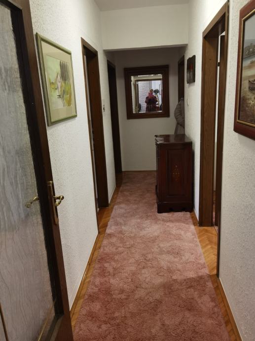 KAT: hodnik iz njega semože ući u garderobni ormar ulazi se u i nakon toga se ulazi kuhinju, blagovaoni i dnevni boravak koji ima svoj WC i izlazak na ZIMSKI VRT i put prema bazenu , tri (3) spavaće sobe , kupaona (masažna kada) poseban WC .