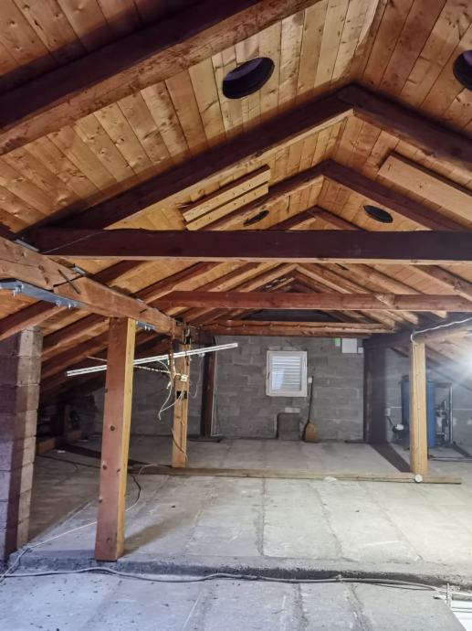 TAVAN im dovoljno visine i prostora da se pretvori u stambenu jedinicu, ako bi bilo potrebno? Kuća ima svoje etažno centralno grijanje preko TERMOBLOKA 10, 20 I 30 kW i kalijevu veliku peć u dnevnom boravku na drva zbog ugođaja.