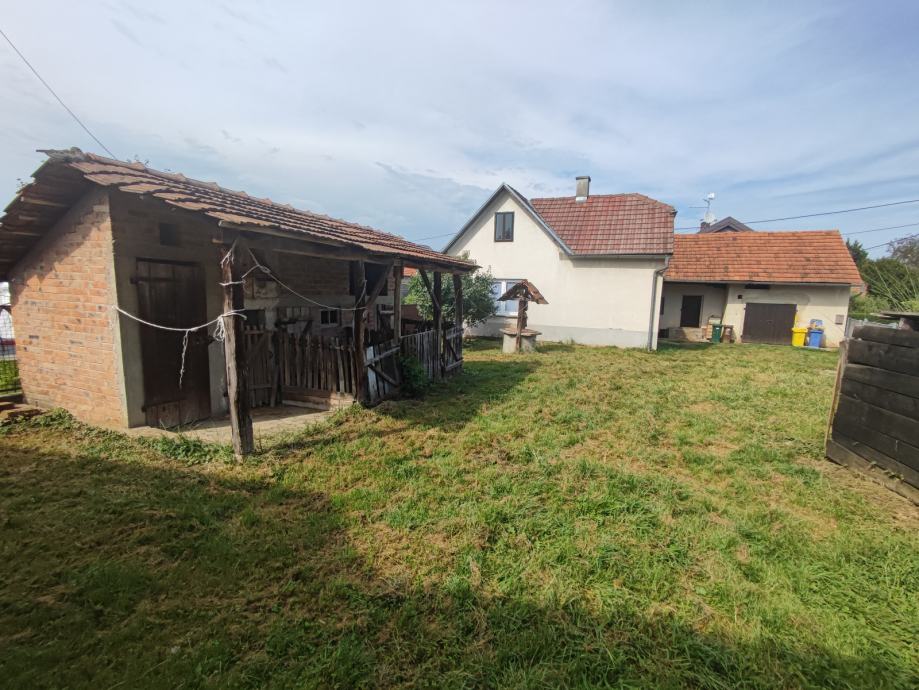 -Dvije sobe, kuhinja,hodnik,kupaona,tavan,špajza,podrum,garaža,veliki prostor iznad garaže,štagelj,popratni objekat, bunar,voćnjak manji,vrt!