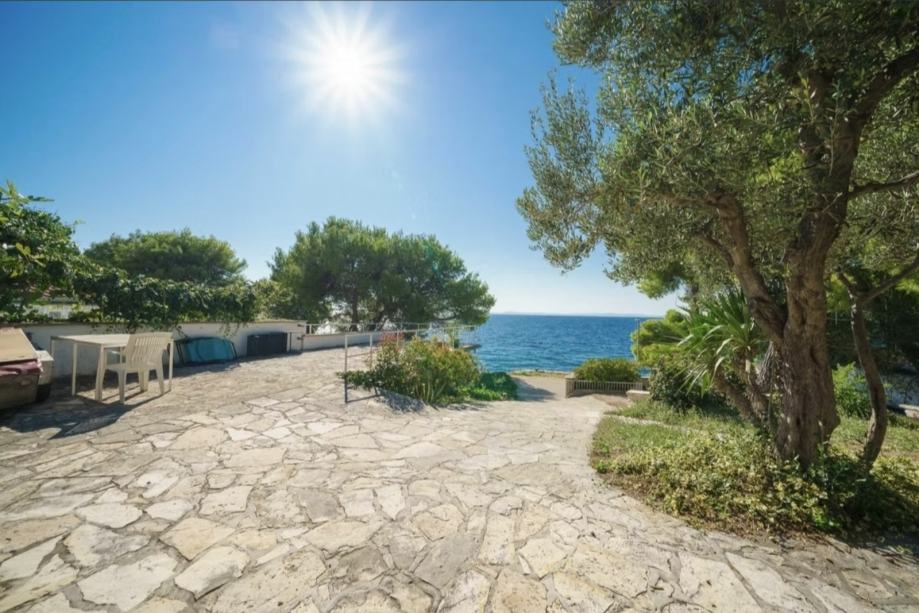 Jedinstvena nekretnina na Murteru, TOP PRILIKA... vila 350m2 sa zemljištem površine 950m2, prvi red do mora, 150 metara od poznate plaže Slanica te 5 minuta vožnje biciklom do plaže Podvrške. Adresa je Turistička ulica 14, Murter. Vila kompletno okružena zelenilom sa popločenim dvorištem, garažom za 2 automobila koja na krovu ima prekrasnu kamenu terasu i parking za 3 automobila. Iz kuće se pruža prekrasan pogled na Kornate. Vila ima 4 apartmana sa sveukupno 7 soba i 4,5 kupaonice. Kupovinom vile se dobiva i godinama uhodani posao jer se vlasnici vec 20 godina bave iznajmljivanjem.