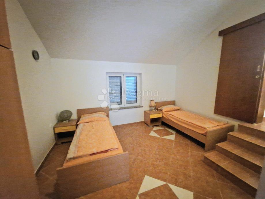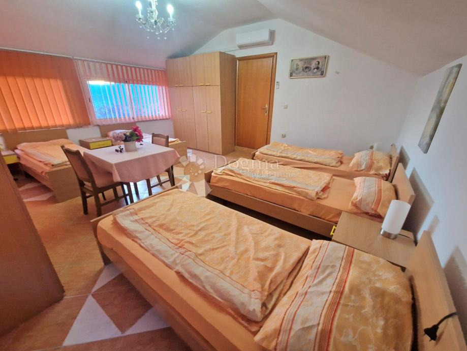 Na raspolaganju vam je prostrana kuća za dugoročni najam koja može ugostiti do 11 osoba. Kuća je dvokatna, s prizemljem i katom, koji su povezani unutrašnjim stepenicama. Opremljena je sa četiri prostrane spavaće sobe. Dnevni boravak spojen s kuhinjom i blagovaonicom stvara ugodan i funkcionalan prostor za zajedničko druženje i obroke.