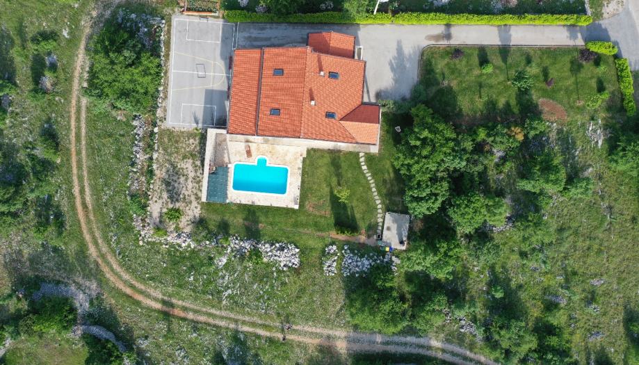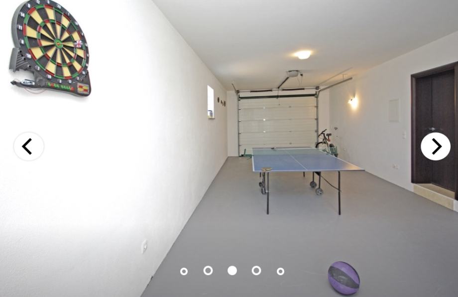 Sastoji se od kuhinje (sa svim potrebnim aparatima) i čajne kuhinje, blagavaone, dnevnog boravka ,6 spavaćih soba 5 kupatila i 1 wc u garaži.Također ima više parkirnih mjesta te saunu i jacuzzi. Vanjski grill i dvorište.