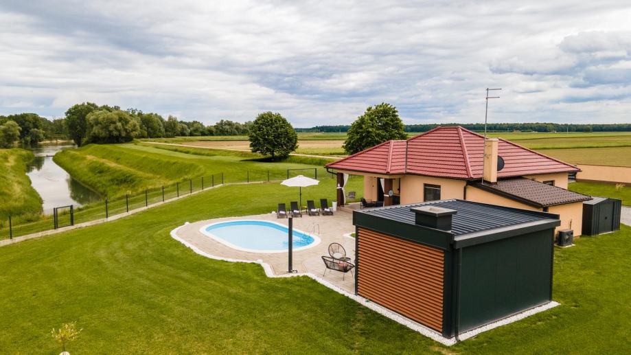 -prekrasna novoizgrađena vanjska pečenjara sa pogledom na Dravu