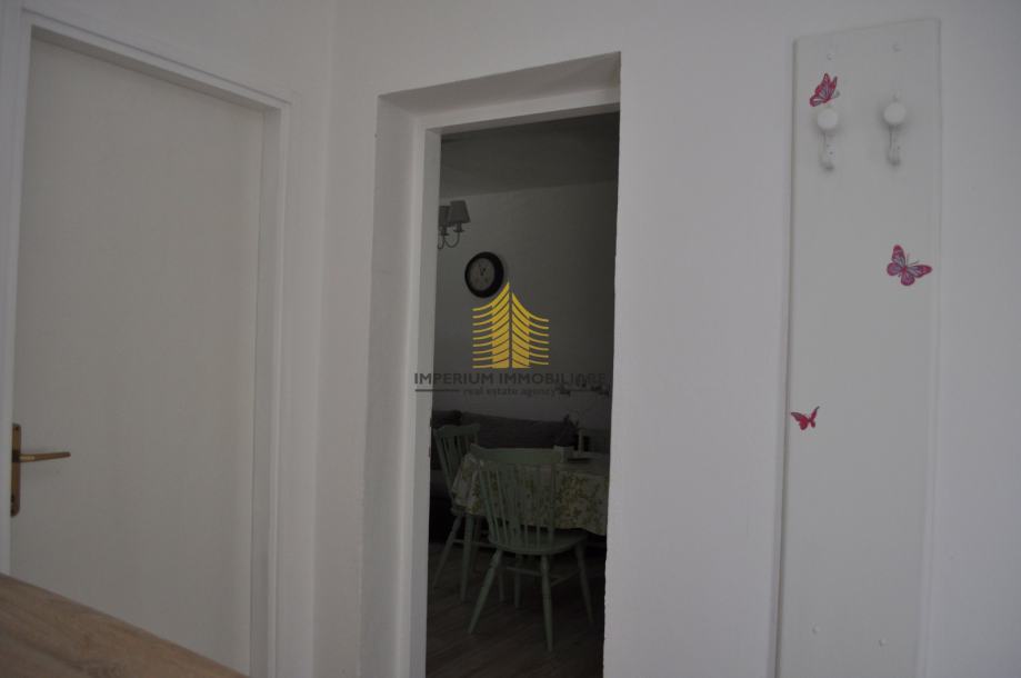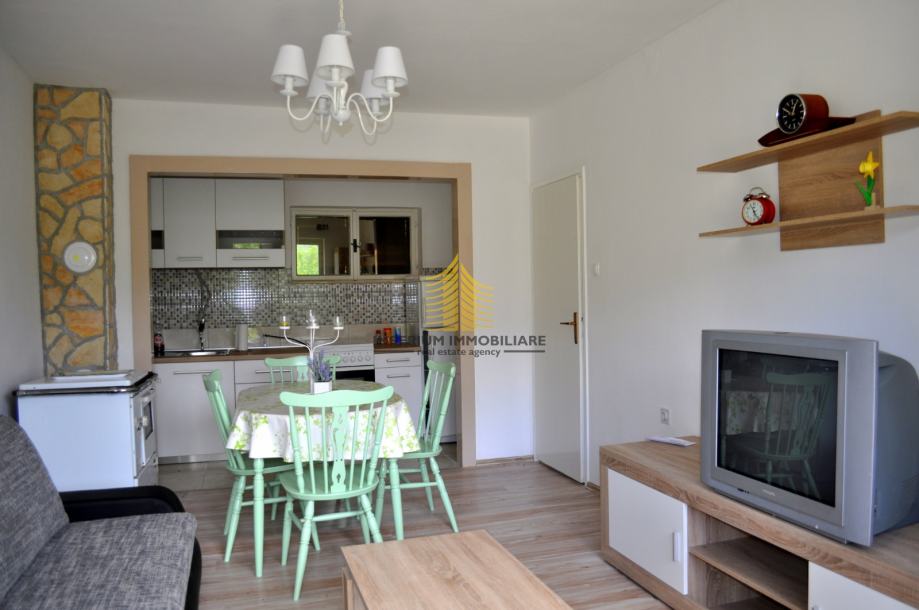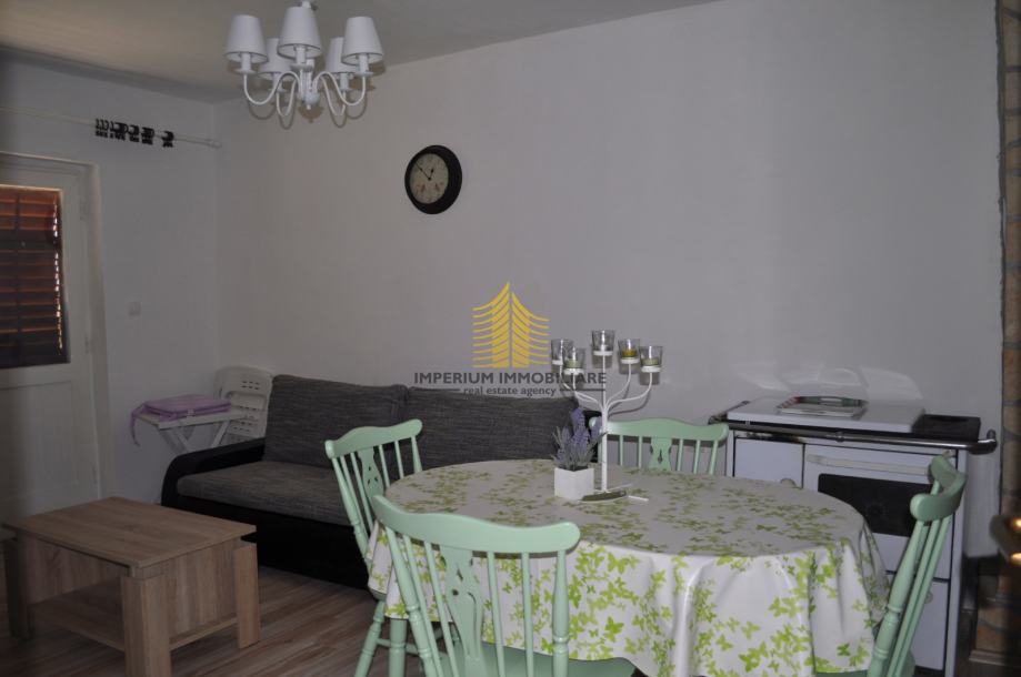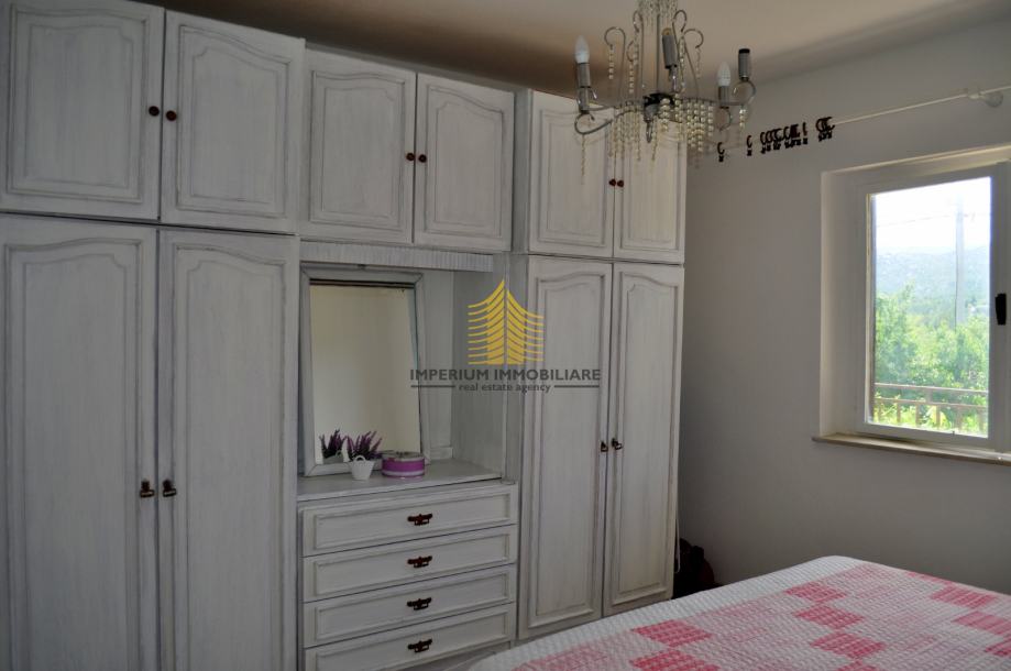 Kuća raspolaže jednom spavaćom sobom, a dodatne prostorije uključuju balkon, drvarnicu, ljetnu kuhinju, vrt, dvorište i ostavu/skladište. Orijentacija objekta omogućuje obilje prirodnog svjetla tijekom dana, stvarajući vrlo sunčanu i ugodnu atmosferu za stanovanje. Grijanje je riješeno putem struje i čvrstih goriva, što omogućuje fleksibilnost i udobnost tijekom cijele godine.