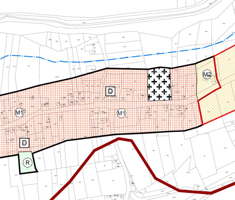 – druga zgrada je neodređene namjene ( nekad je bio mlin) tlocrtnih dimenzija po građevnom pravcu cca 14,26 m a u dubinu cca 9,00 m, kosog dvostrešnog krova, sljeme paralalno sa regulacionom linijom, visine do vijenca cca 10,97 m te do sljemena cca 13,97 m, mjereno od niže kote uređenog terena; zgrada neodređene namjene je slobodnostojeća prizemnica sa dva kata.