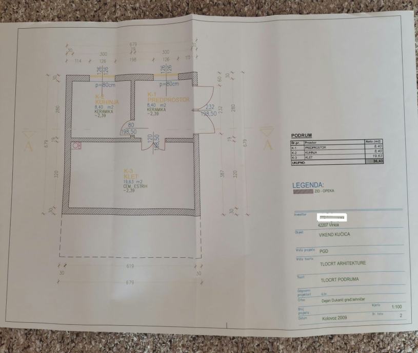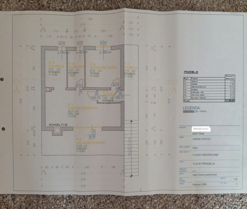 Prizemlje se sastoji od terease, hodnika, dnevnog boravka, kuhinje, kupaone, spavace sobe i balkona ukupne povrsine 70.44 m2. Objekt posjeduje svu potrebitu dokumentaciju. Ponude na mobitel: 091/1722356