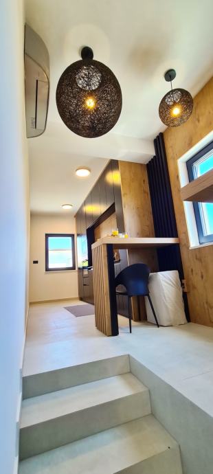 Na prvom katu se nalazi studio / apartman sa kupatilom, te nadalje još dvije spavaće sobe i jedno veliko kupatilo, dok se stubama još gore komunicira prema krovnoj terasi.