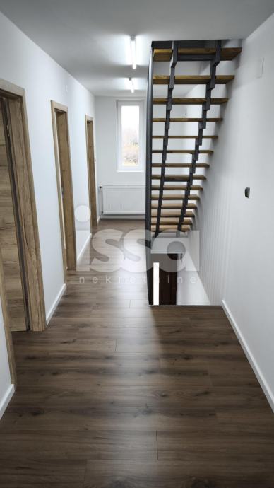 Prodaje se troetažna kuća u nizu u Velikoj Mlaki. Kuća je građena 2024. godine. Na donjoj etaži nalaze se dnevni boravak s kuhinjom i blagavaonicom i wc. Na katu soba, garderoba (soba) i kupaonica/wc. U potkrovlju 3 sobe, hodnik i terasa te izlaz na tavan koji može služit kao veliko spremište. Tlocrti su u oglasu. Termo fasada. Grijanje na dizalicu topline. U dvorištu mjesto za dva automobila, te vrt od 99m2. Mirno i tiho okruženje pogodno za obiteljski život. Odlična lokacija u bliziini ambulanta, trgovina, autobus u svim smjerovima, brzi vlak, 3 vrtića, šoping centar. Vlasništvo uredno ( u procesu upisa) mogućnost kredita banaka.