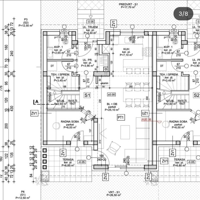 Kuća u nizu - ukupno 3 kuće po objektu. Grade se 2 objekta na površini od 2400m2.