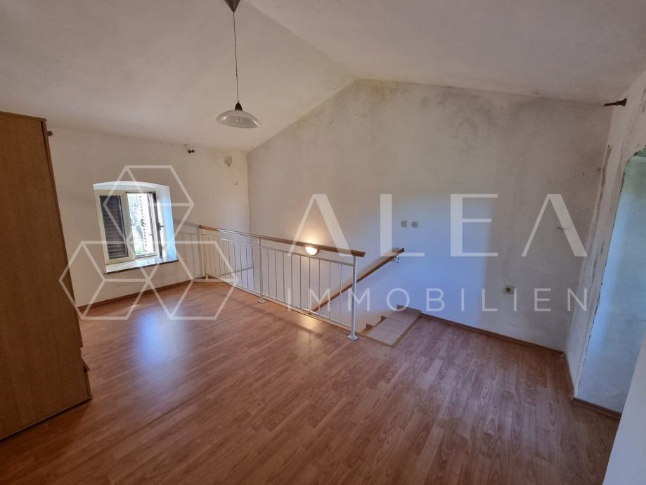Unutarnjim stepenicama dolazimo na kat gdje je smještena spavaća soba i veliko predsoblje.