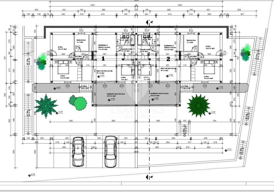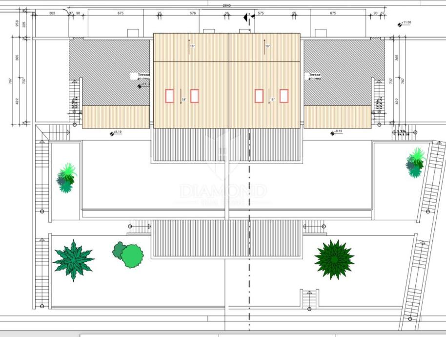 Kuća je u nizu i sa svojih 110m2 pruža sve što je potrebno za pronaći mir spojen sa luksuzom. Kuća se sastoji od 3 spavaće sobe, odvojene garderobe, kupaonice, kuhinja i dnevni boravak iz kojih se izlazi u dvorište sa bazenom okruženom rajskom prirodom.