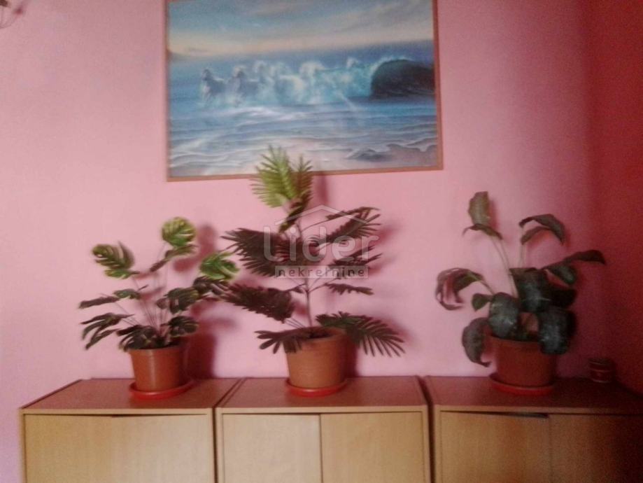 Na prvom katu se nalazi dnevni boravak, kuhinja kupaona i jedna soba. Unutarnjim stepenicama dolazimo u potkrovlje gdje je otvoreni prostor kosog krova i terasa. Sa stražnje strane također ulaz u kuću.