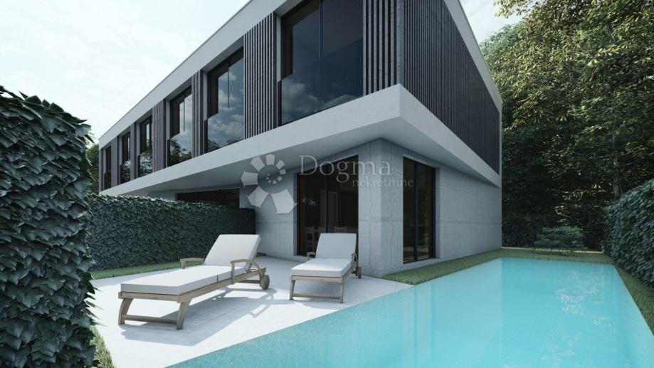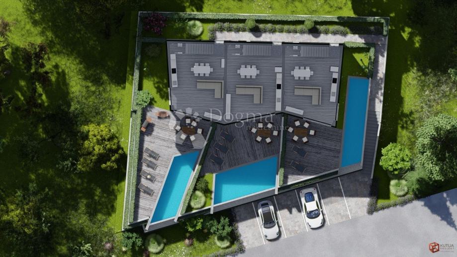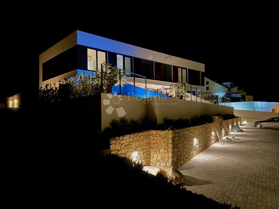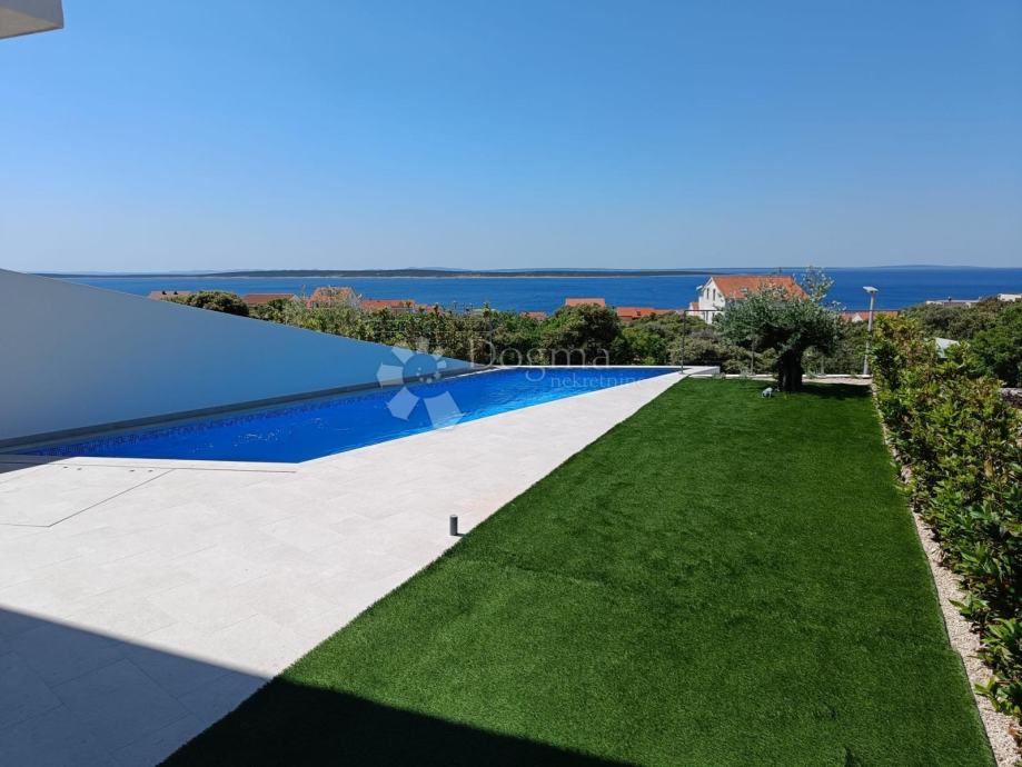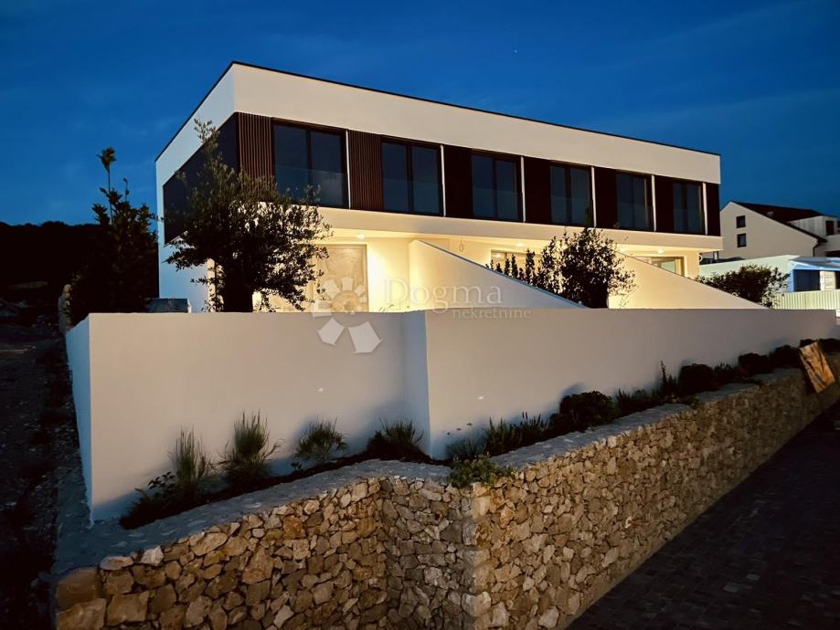 Luksuzna novogradnja u Mandrama, na predivnom otoku Pagu, predstavlja idealnu priliku za život u luksuzu uz spektakularan pogled na more. Ova ekskluzivna ponuda obuhvaćuje tri prekrasne kuće u nizu, svaka sa svojim privatnim bazenom, smještene na povišenom dijelu, udaljene samo 300 metara od obale.