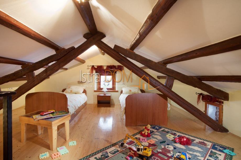 U prizemlju se nalazi prostrani dnevni boravak povezan s kuhinjom i blagovaonicom, kao i kupaonica. Na katu su smještene tri udobne spavaće sobe, svaka s dovoljno privatnosti, te tri moderno uređene kupaonice, što ovu kuću čini idealnom za obitelj ili turistički najam.
