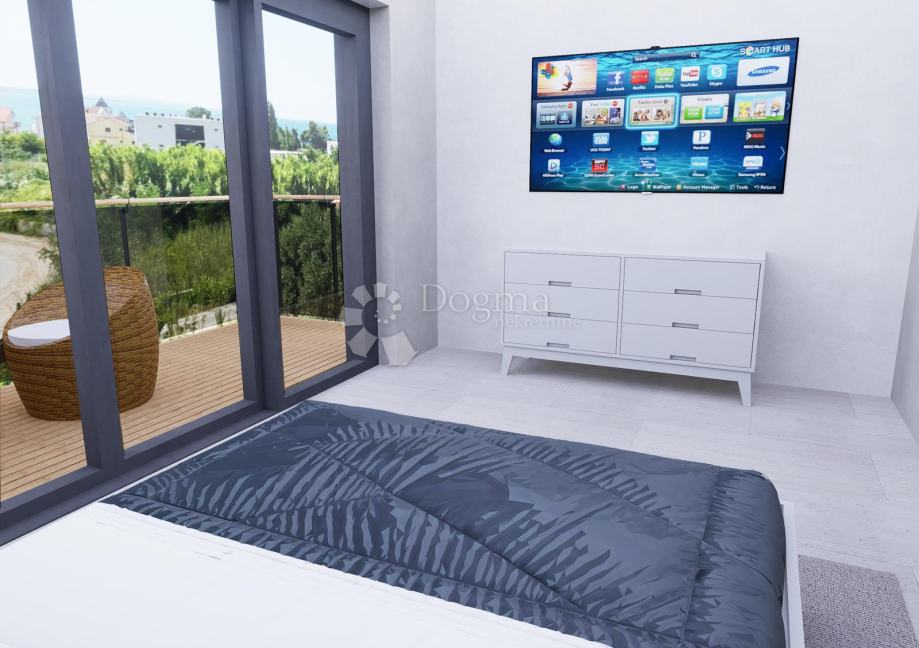 Na prodaju premium izgrađena kuća u nizu u Vrsima, sa pogledom na more i samo 150 m udaljenosti od plaže. Savršena kombinacija moderne arhitekture i vrhunske izvedbe.