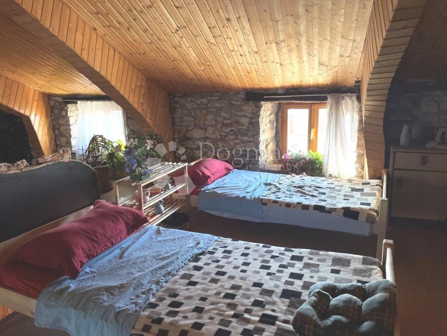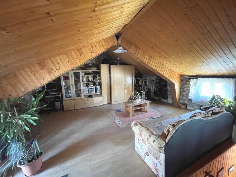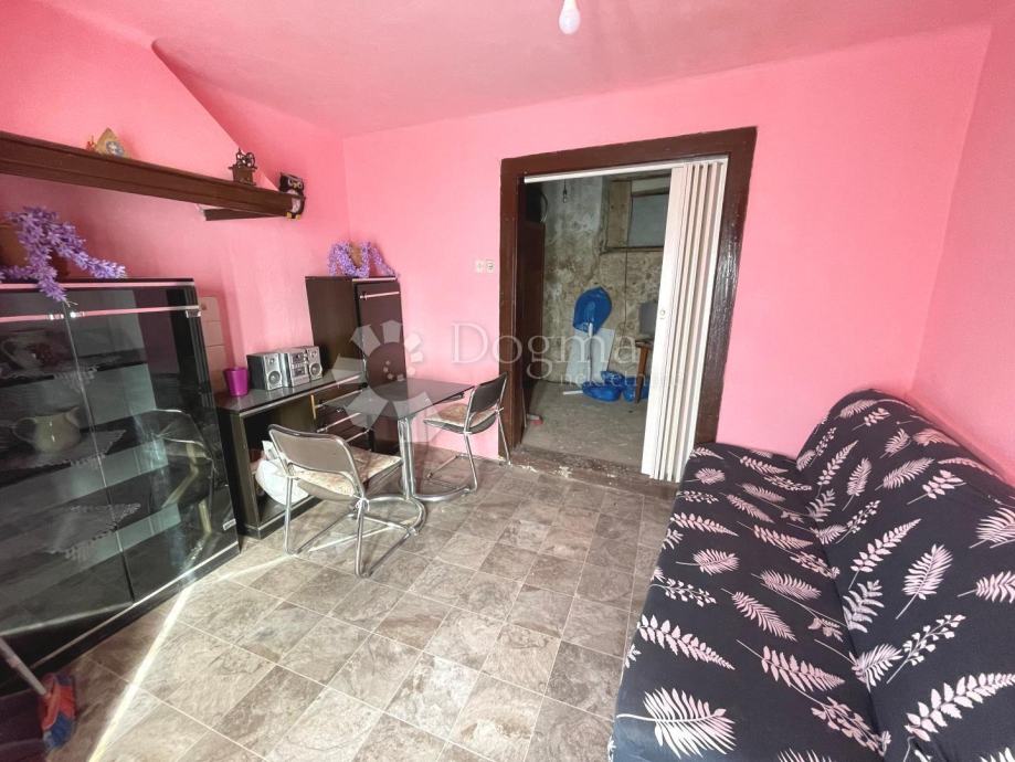U samom centru mjesta nalazi se ova kuća u nizu koja je smještena na parceli veličina 204 m2. Kuća ima tri etaže, te dva ulaza. Stoga postoji mogućnost dvije zasebne stambene jedinice.