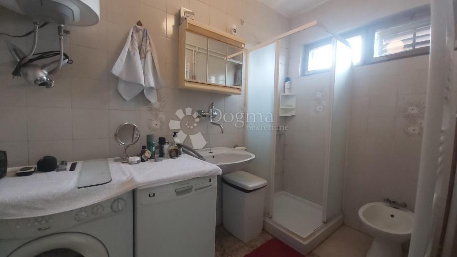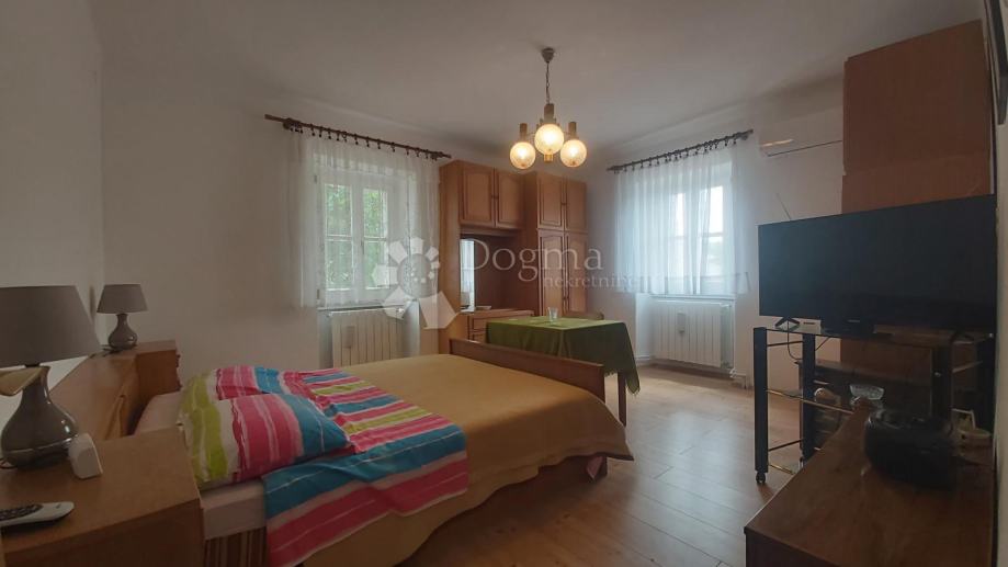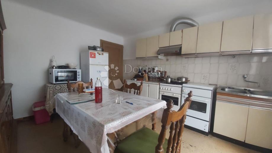 Prodaje se dvojna kuća smještena na mirnoj povišenoj lokaciji s predivnim pogledom na cijeli Labin. Ova kuća, zadnja u nizu, prostire se na dvije etaže, svaka po cca 70m². Prizemlje obuhvaća predsoblje, kuhinju s blagovaonom, dnevni boravak, kupatilo, toalet, spremište, konobu s ognjišćem i ostakljenu verandu. Unutarnje drveno stepenište vodi na prvi kat gdje se nalaze dvije spavaće sobe i jedna ostava. Kuća ima centralno grijanje na lož ulje, novi krov i novu pvc stolariju na katu. Okućnica od 450m² pruža brojne mogućnosti za uređenje. Prema današnjim standardima kuća zahtijeva renovaciju, ali je useljiva u trenutnom stanju. Idealna je za obitelj koja traži blizinu grada uz mirno seosko okruženje.