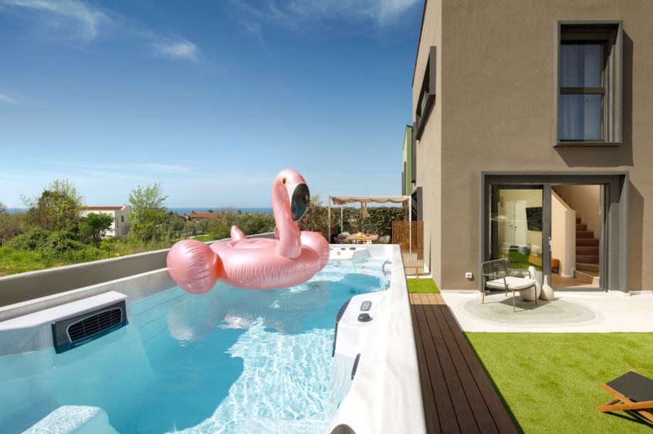 U ograđenom dvorištu se nalazi i Jacuzzi/bazen.