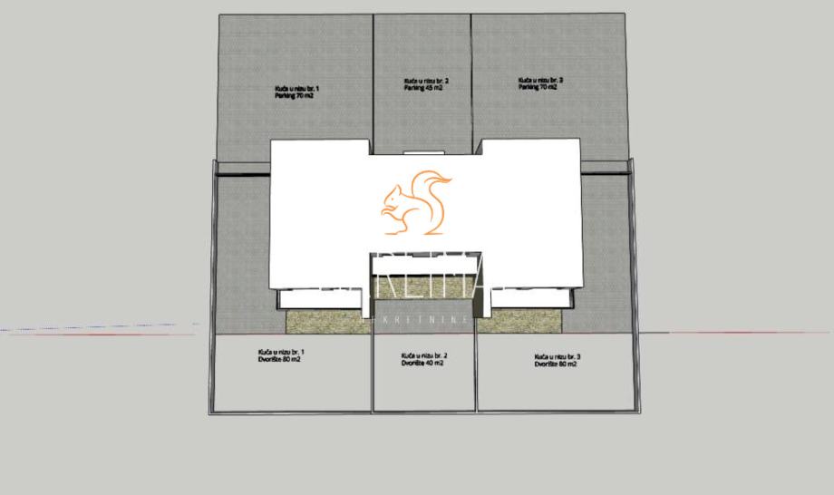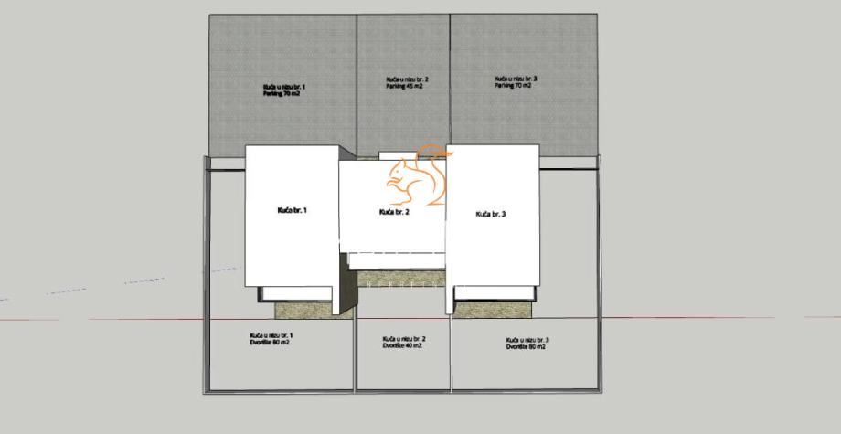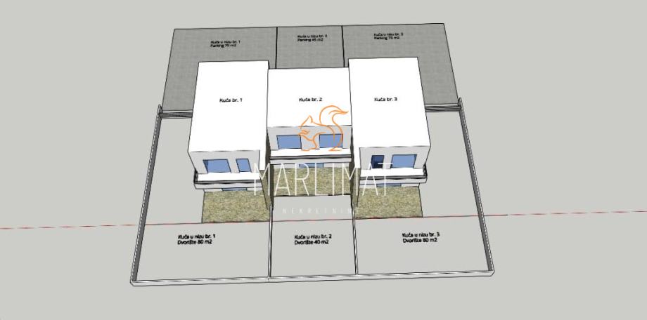 Pripadajući vrt veličine 80m2 te parking za dva automobila no u načelu površina od 90m2 osigurava mogućnost više parkirnih mjesta.