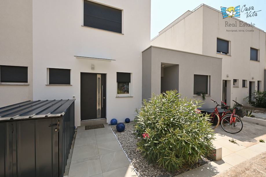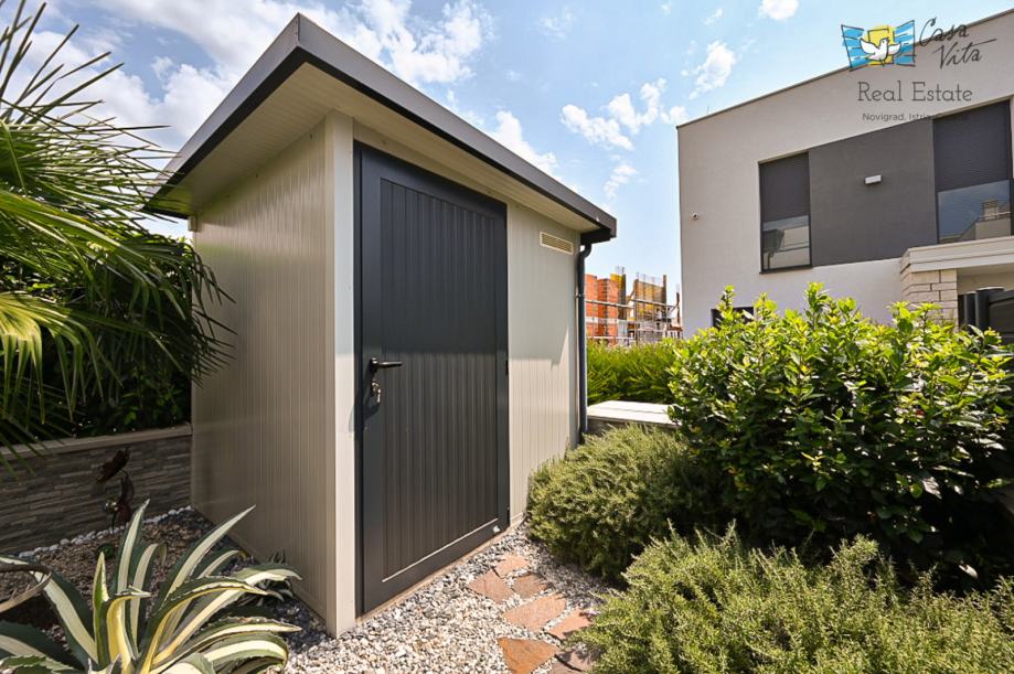 Kuća se prodaje kompletno opremljena, ima svoju vrtnu kućicu, vanjsko spremište za bicikle i parkirno mjesto.