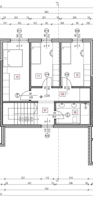 Na katu su 3 spavaće sobe koje također gledaju na dvorišnu stanu objekata, kupaonica i hodnik u kojem je predviđen ugradbeni ormar.