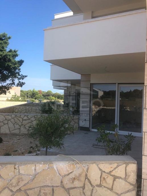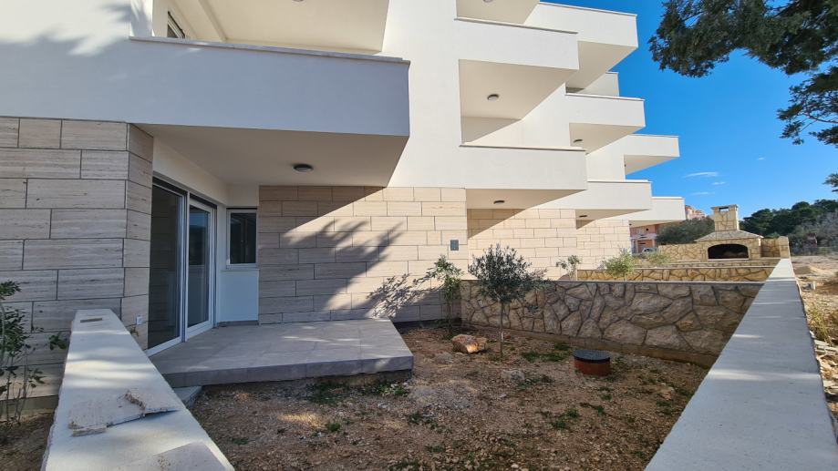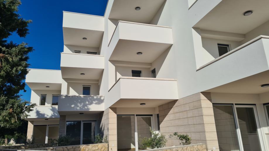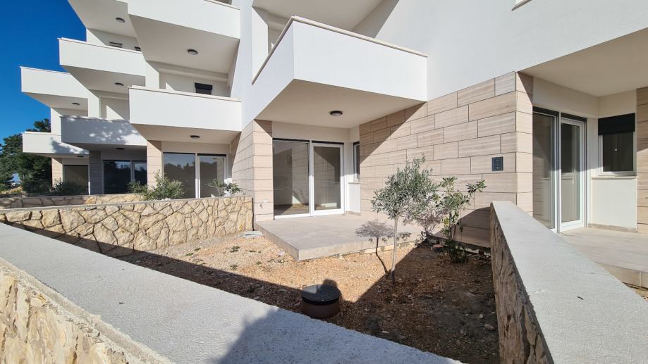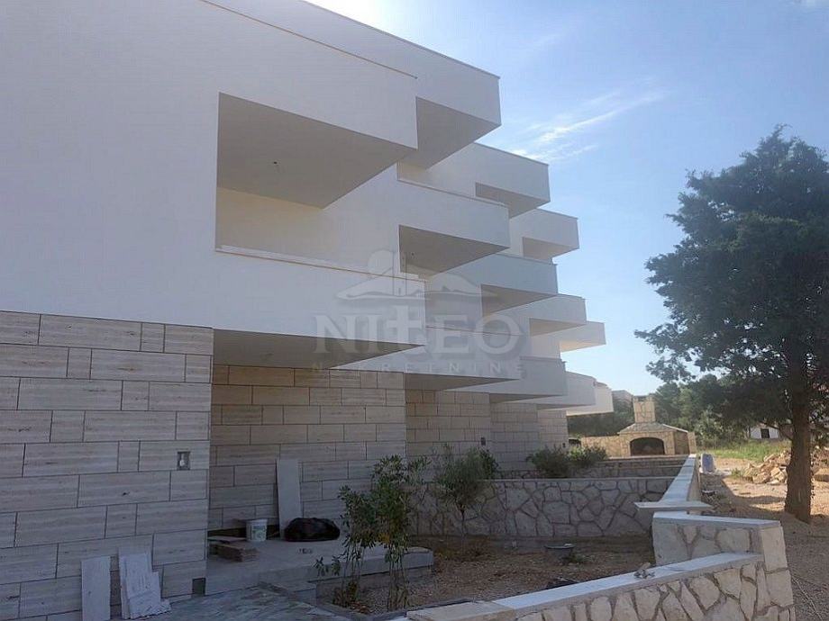 Prodaje se četverosobni apartman (S1) odnosno kuća u nizu s vrtom na izuzetnoj lokaciji u Novalji, blizu plaža Vrtić i Lokunje.