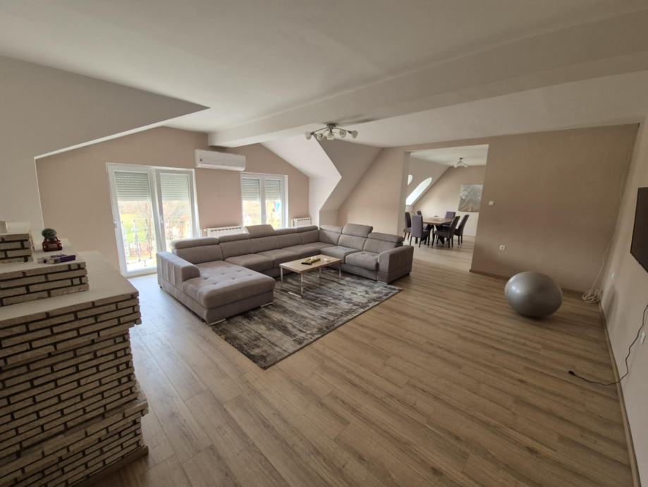 Kat-veliki stambeni prostor koji se sastoji od cetri spavace sobe,velikog dnevnog boravka,blagovaonice, kuhinje i dvije kupaonice.(192m2)