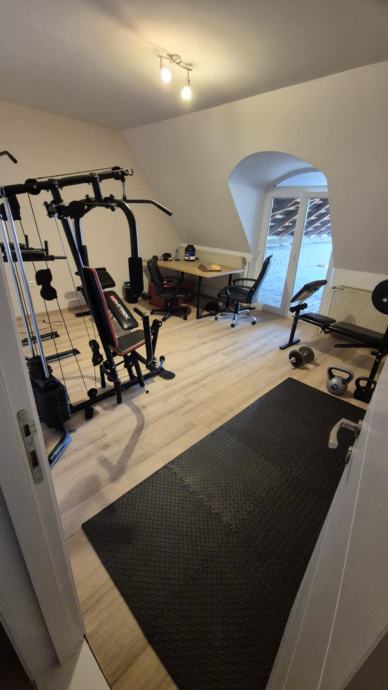 Nekretnina ima veliko privatno dvoriste, garazu za dva auta(garazna vrata na daljinsko upravljanje), centralno grijanje na plin, klima uređaj u dnevom boravku.