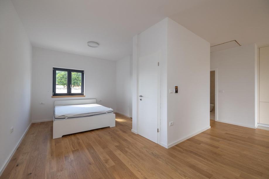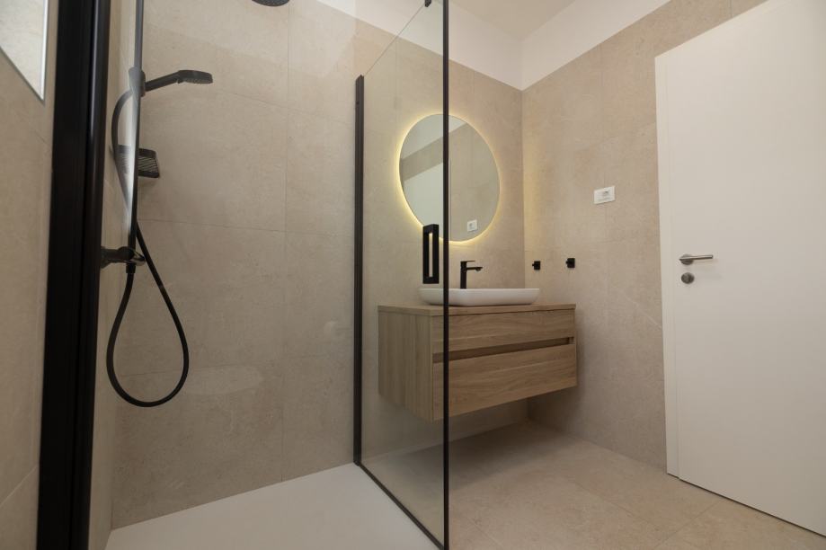 Površina stambenog prostora je 60m2, terasa 22m2 a okučnica 130m2, čime je idealna zbog jednostavnog i brzog održavanja vanjskog i unutarnjeg prostora. Obzirom na blizinu centra, prednost je što ima vlastitu okućnicu te dva popločena parkirna mjesta.