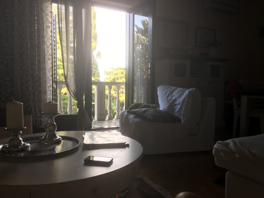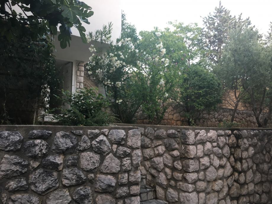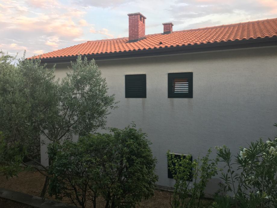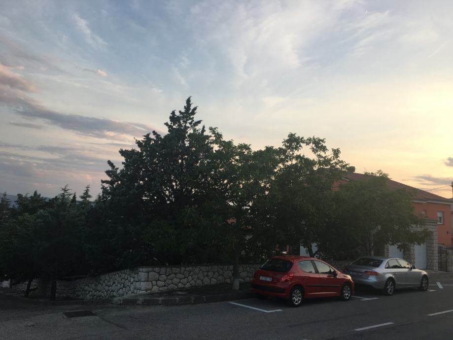 Kuća u Novom Vinodolskom na adresi K.Zvonimira 54, u blizini centra grada, udaljena 150m od mora. Sastoji se od dva zasebna stana, svaki ukupne površine 75m2 ( 2 spavaće sobe, dnevni boravak, kuhinja, kupaona i hodnik ). Kuća je smještena na uglu tako da ima 2 zasebna ulaza, 2 garaže (30m2), spremište u dvorištu ( 20m2), zaseban WC u dvorištu i prekrasan vrt s pogledom na more. Vlasništvo 1/1.