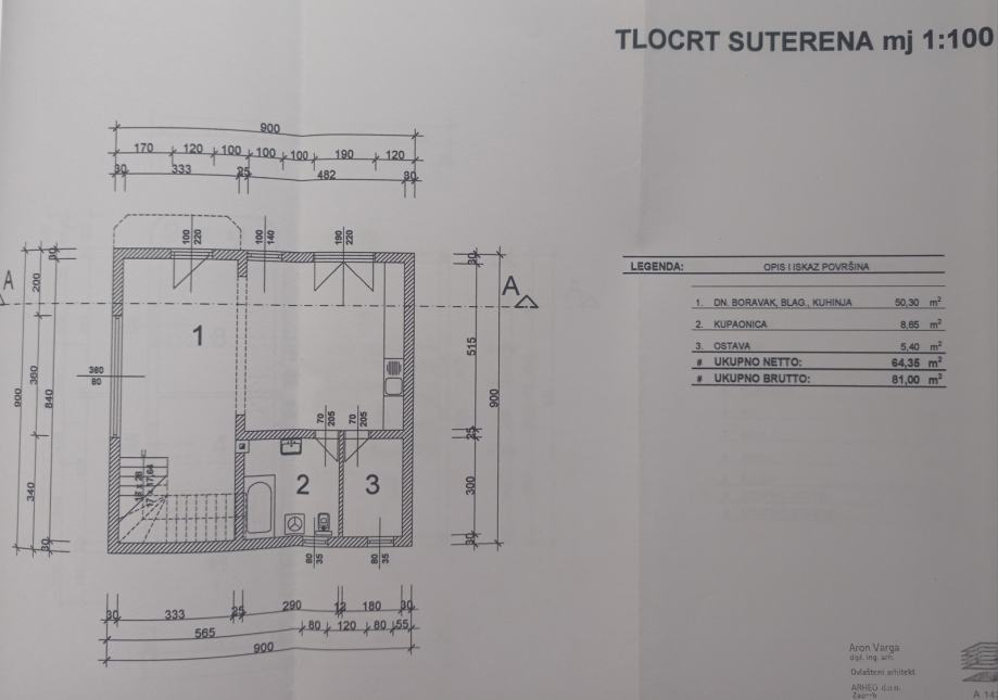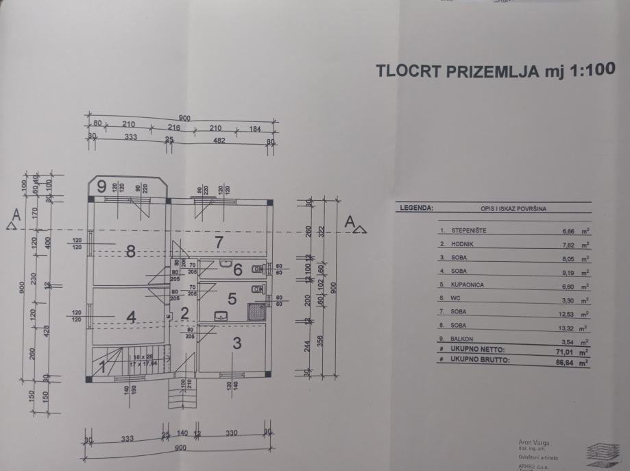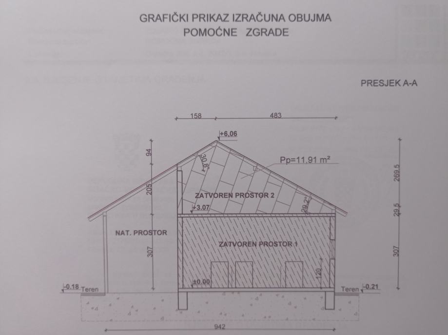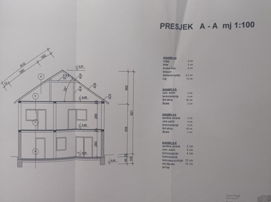 Suteren-srednji roh-bau, prizemlje -visoki roh-bau+provedene cijevi za centralno grijanje kroz podni estriht. Aluminijska -plastificirana stolarija +rolete s elektro motorom. Rješenje o uvjetima građenja +Uporabna dozvola, vlasništvo 1/1.