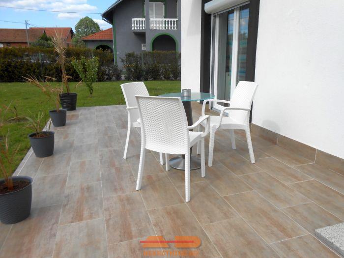 Iz boravka je izlaz na prednju terasu, popločena, uređena.